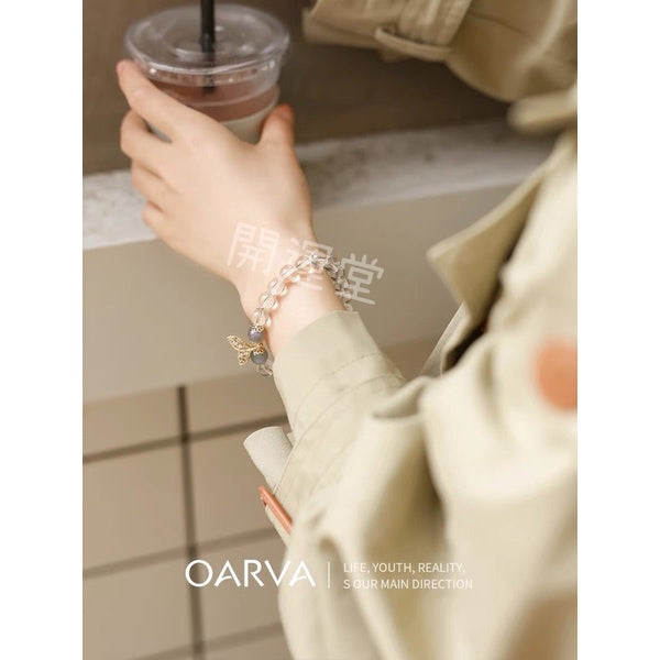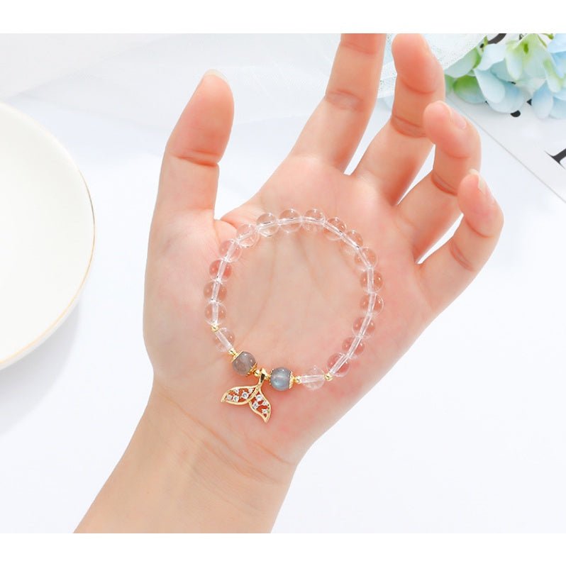 🔥現貨🔥白水晶手鍊女款新款白水晶灰月光小眾韓版手串鍍14K魚尾手鍊🔥現貨🔥【開運堂】
