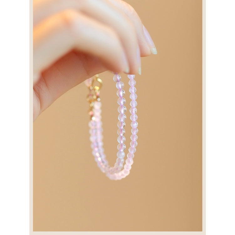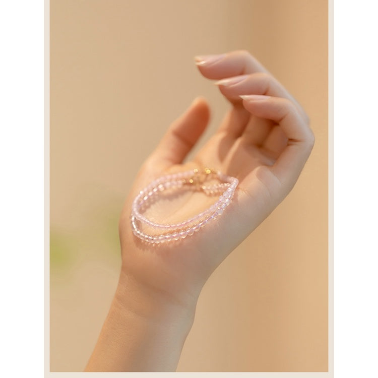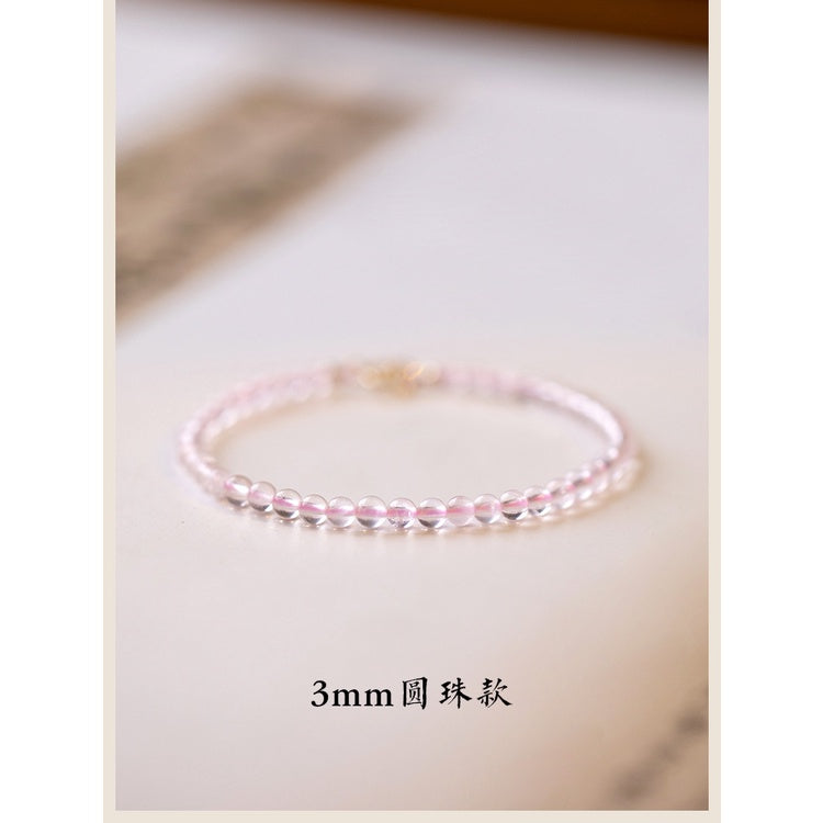 🔥現貨🔥【圓珠】3mm極細粉水晶手鍊女款招桃花轉運珠天然少女心手串ins復古風禮物【飾品批發】