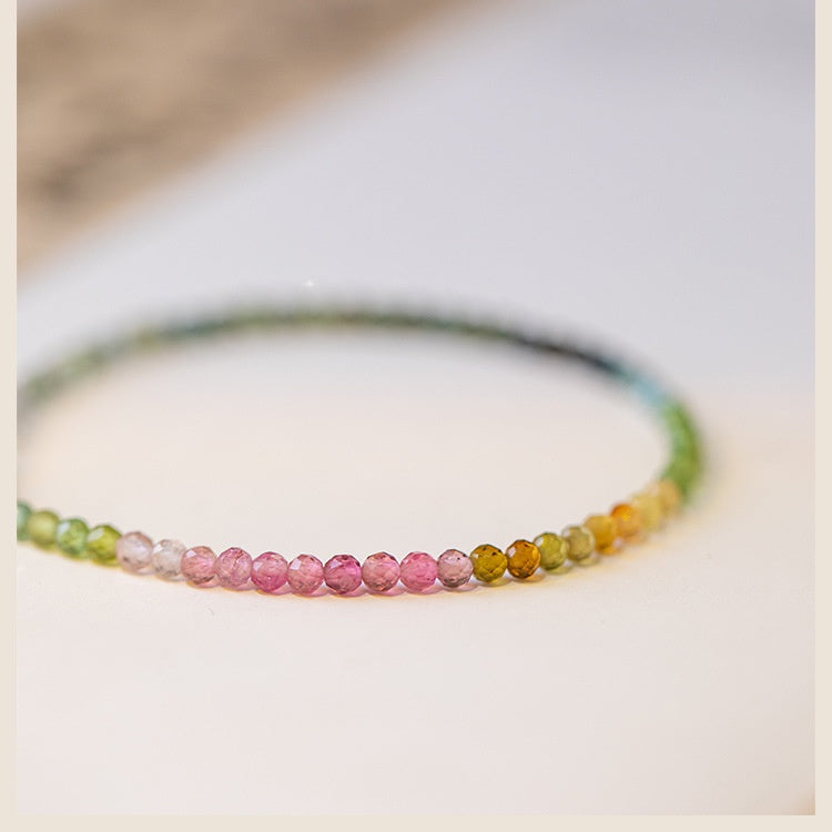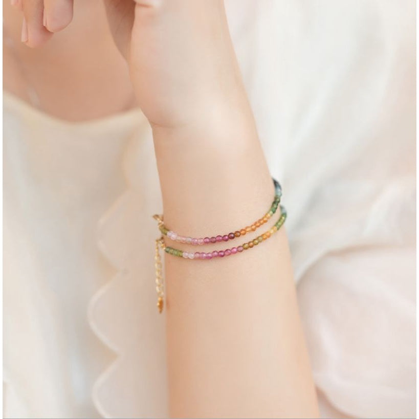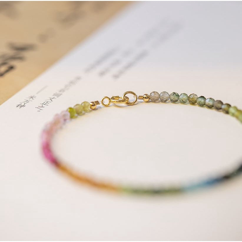 🔥現貨🔥(切面/無鍊)極細2.5mm彩虹小碧璽手鍊女旺夫石14k金漸變水晶手飾【開運堂】