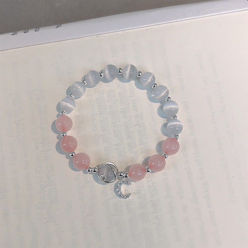 🔥現貨🔥8mm天然粉晶 貓眼石手鍊女生招桃花小眾設計送閨蜜飾物少女心轉運珠聖誕節情人節生日禮物閨蜜情侶