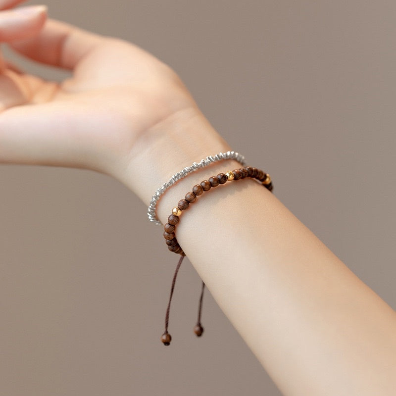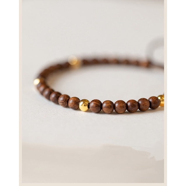🔥現貨🔥【伽藍】4MM金絲檀木佛珠鍍14K金珠手鏈手工飾品小禮物招財轉運珠女復古聖誕節情人節情侶【飾品批發】