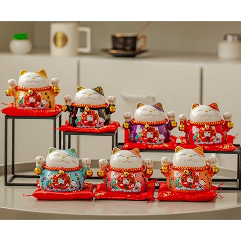 最常見的招財貓是白色,具有招財招福的意思。其次也有各種五顏六色的招財貓,每種顏色都有不一樣的含意。如黑色招財貓代表避邪消災、粉紅色代表戀愛姻緣運、藍色代表事業有成、紅色代表身體健康、綠色代表學業進步、黃色代表財富與成功……不妨依個人需求來選擇不同的顏色招財貓。