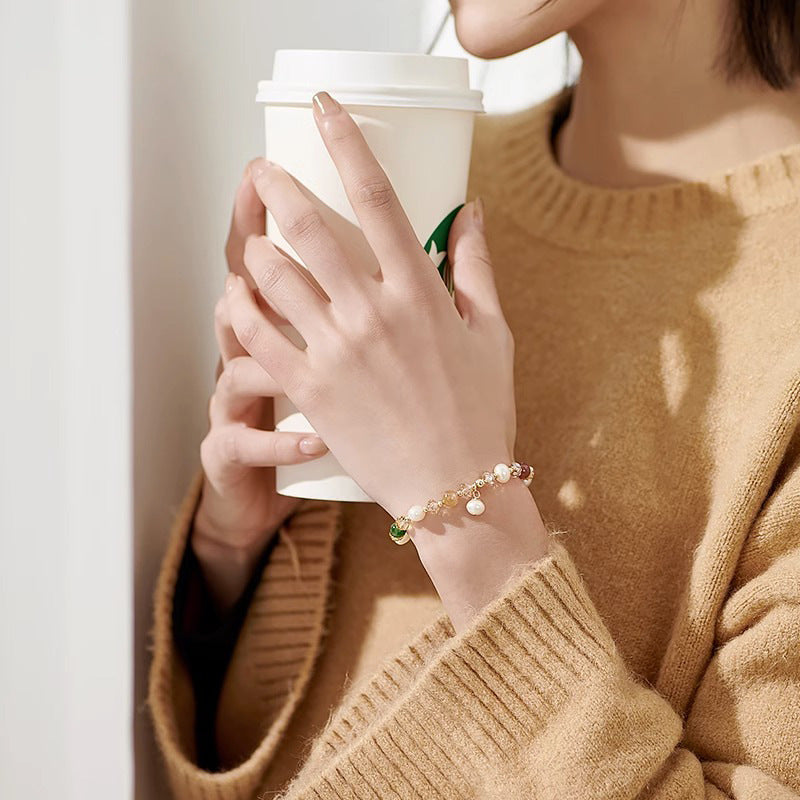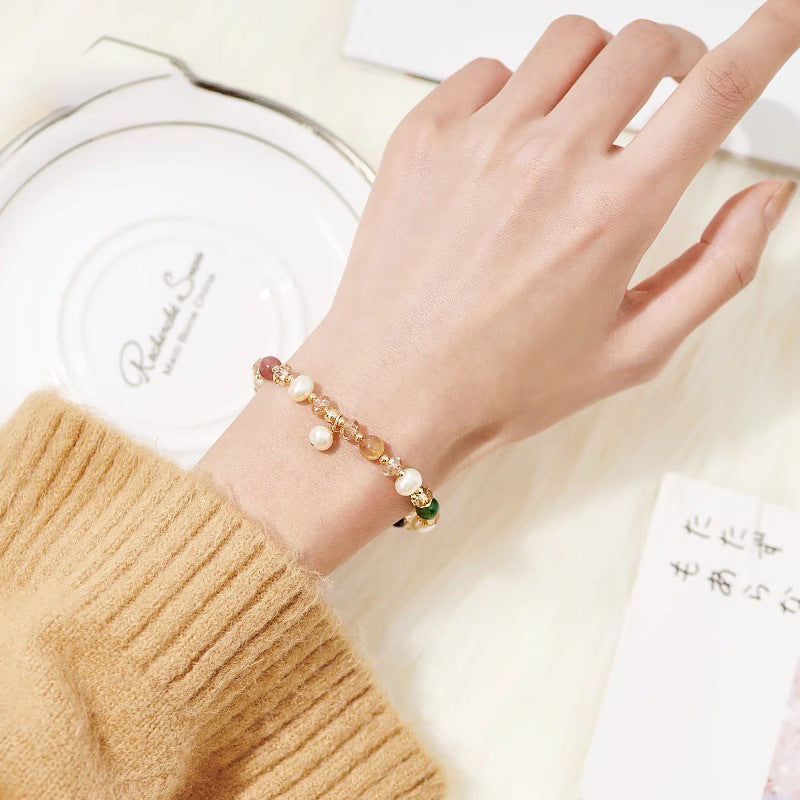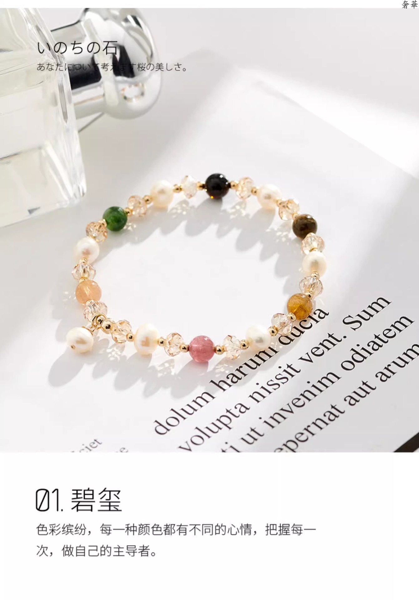 (B238301)天然水晶手鍊女天然碧璽珍珠仿水晶手串飾品送女友禮物輕奢高級感