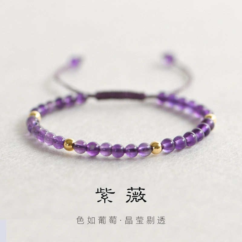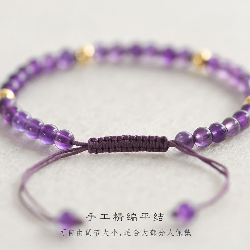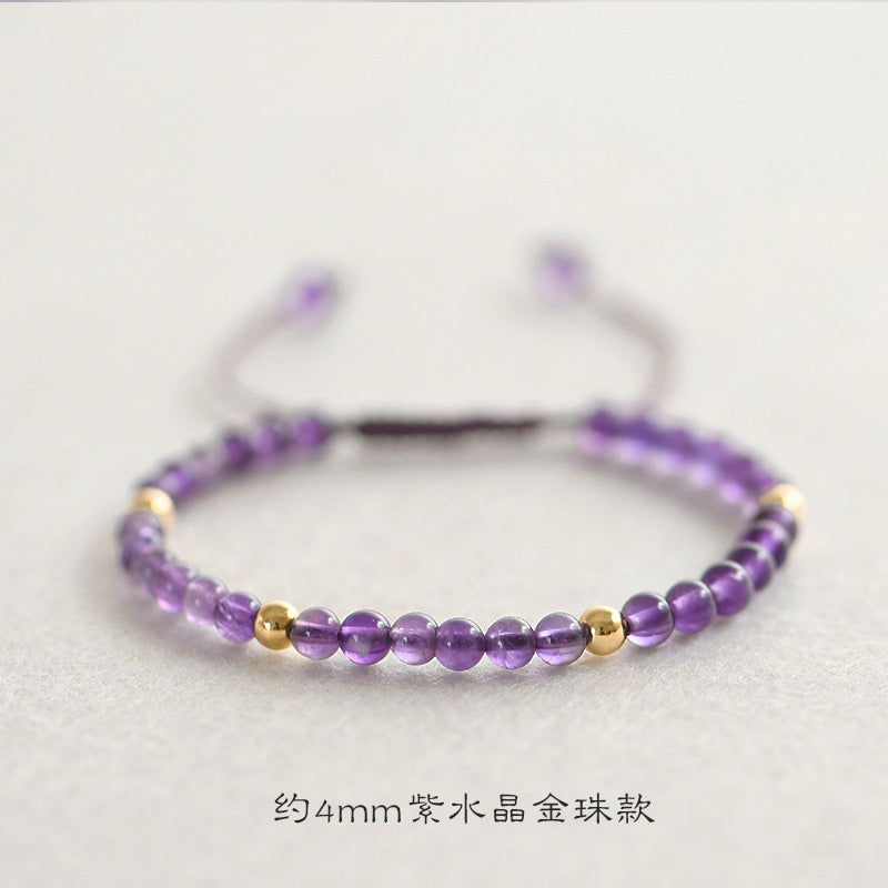 🔥現貨🔥4mm【紫薇】天然紫水晶鍍14k金珠手鍊手工飾品禮物招財轉運珠女旺運情侶聖誕節情人節禮物蝦皮購物【開運堂】