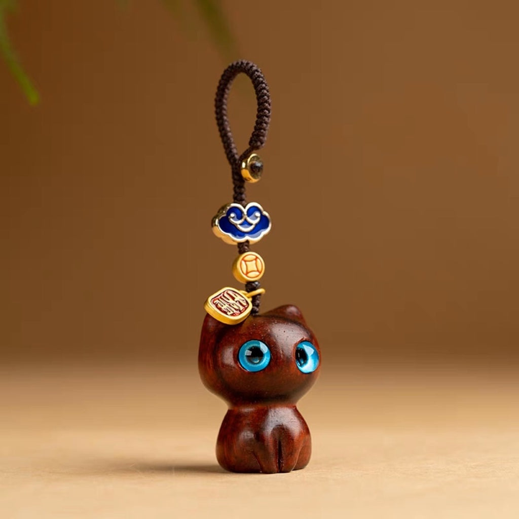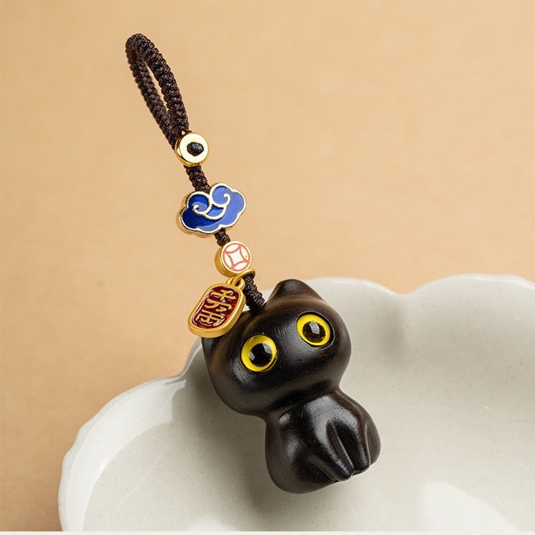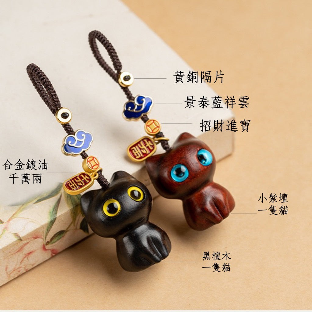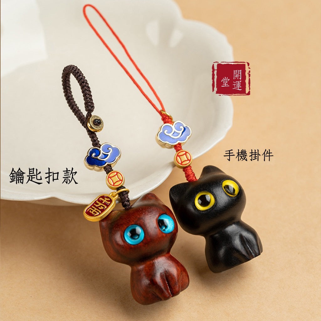 🔥現貨🔥【招財萌貓】黑檀木紫檀木貓咪汽車鑰匙扣可愛手機鏈包挂件個性創意可愛飾品轉運珠情侶創意小禮品