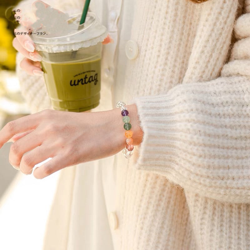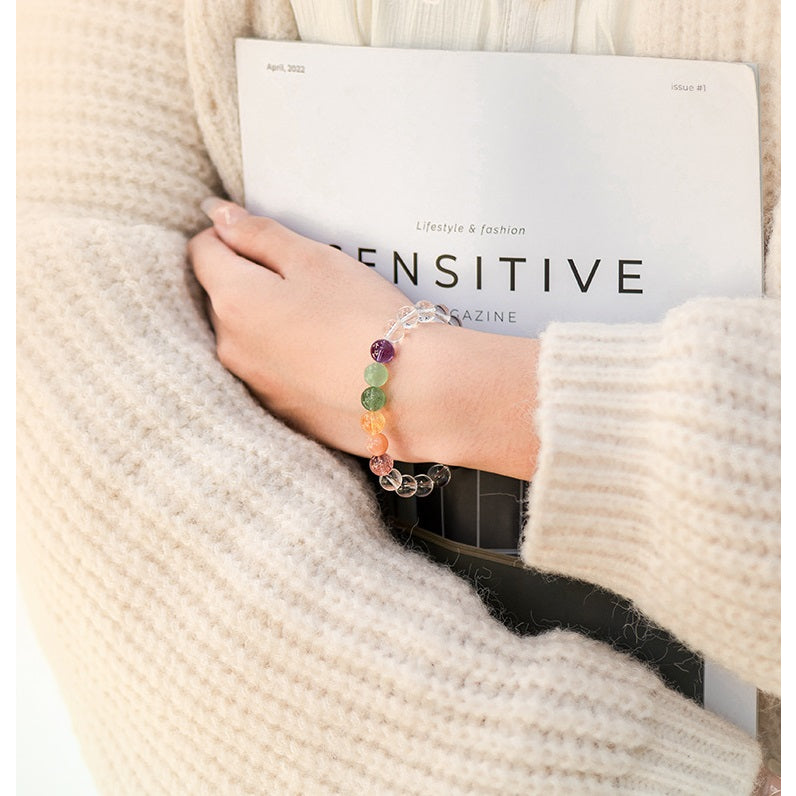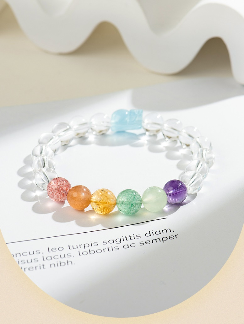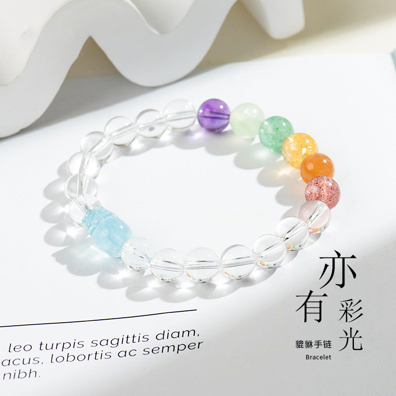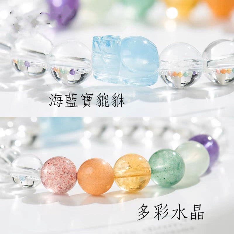🔥現貨🔥七彩虹天然白水晶手鍊女海藍寶貔貅彩色多寶手串ins春夏生日禮物【開運堂】