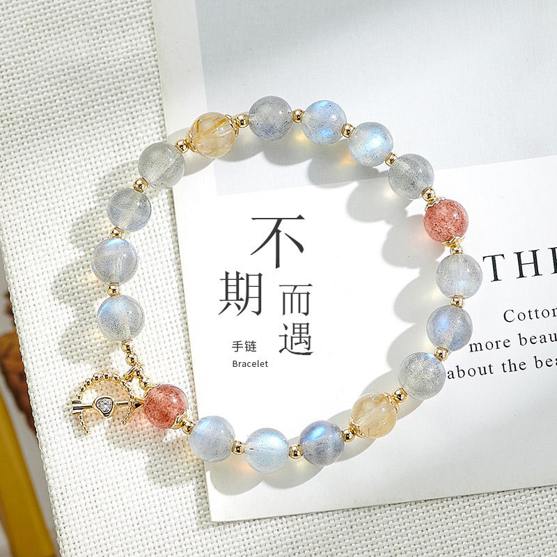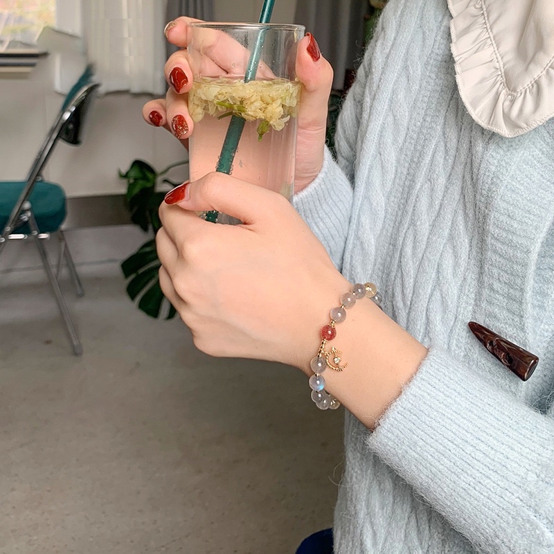 🔥現貨🔥 【不期而遇】天然水晶手鍊女學生草莓晶灰月光手串飾品送閨蜜生日禮物聖誕節禮物情人節禮物