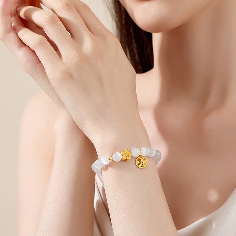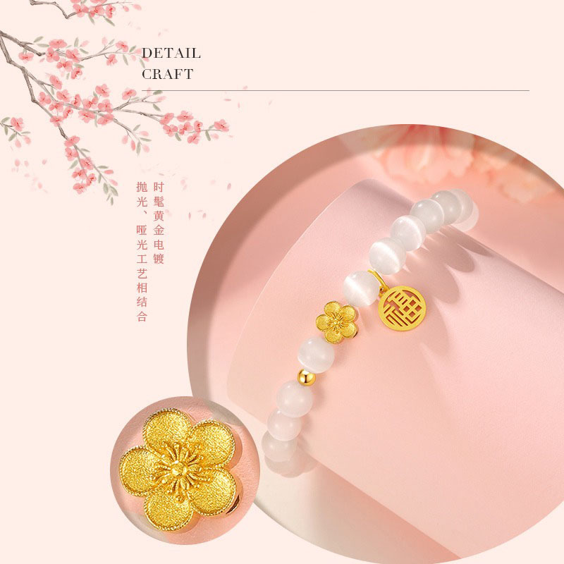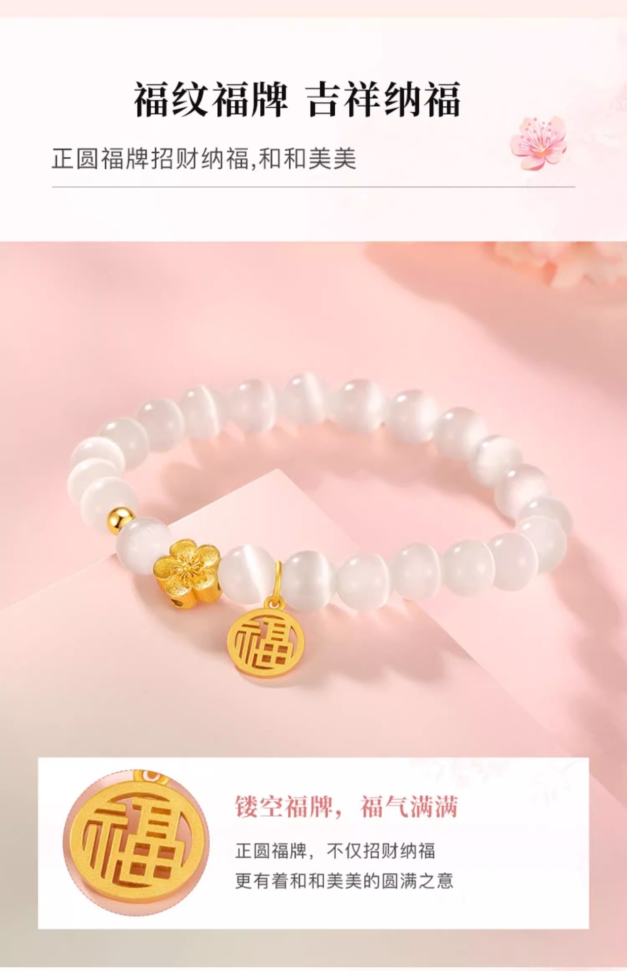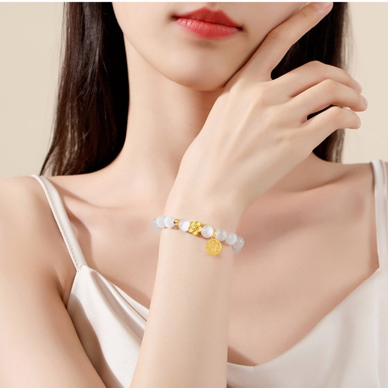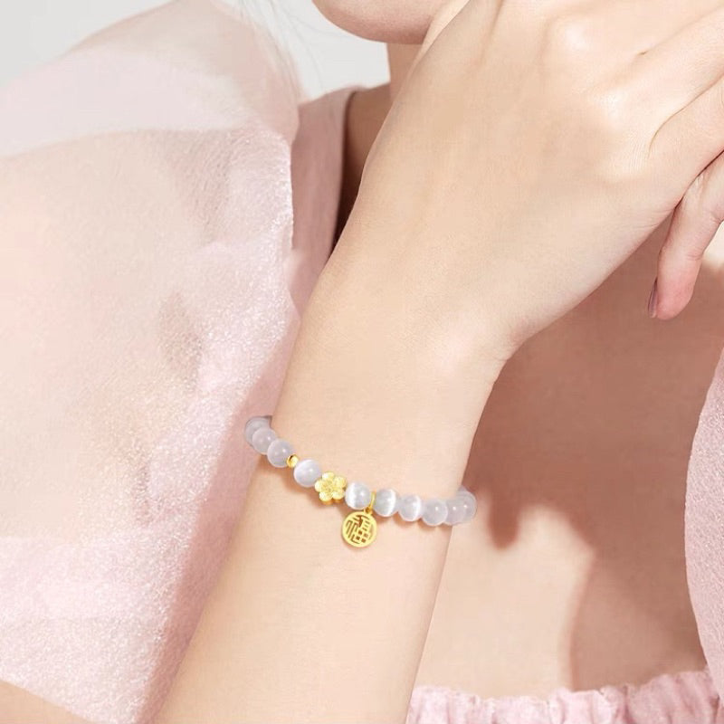現貨貓眼石桃花串珠水晶手鍊福牌輕奢高級感手串新中式國風飾品送女友