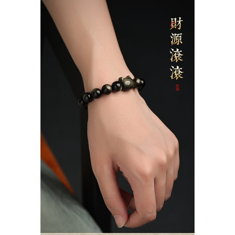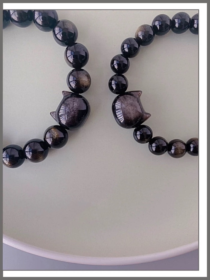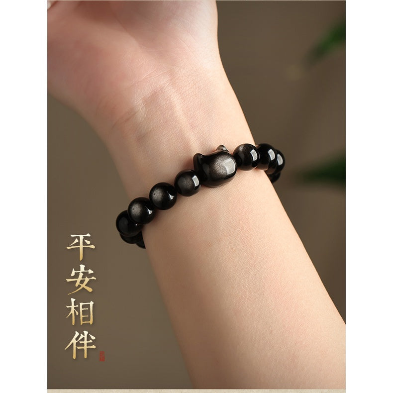 🔥現貨🔥【黑夜精靈】招財貓天然銀曜石手串貓咪貓頭黑曜石男女手鍊閨蜜情侶生日禮物情人節聖誕節蝦皮購物"飾品批發"