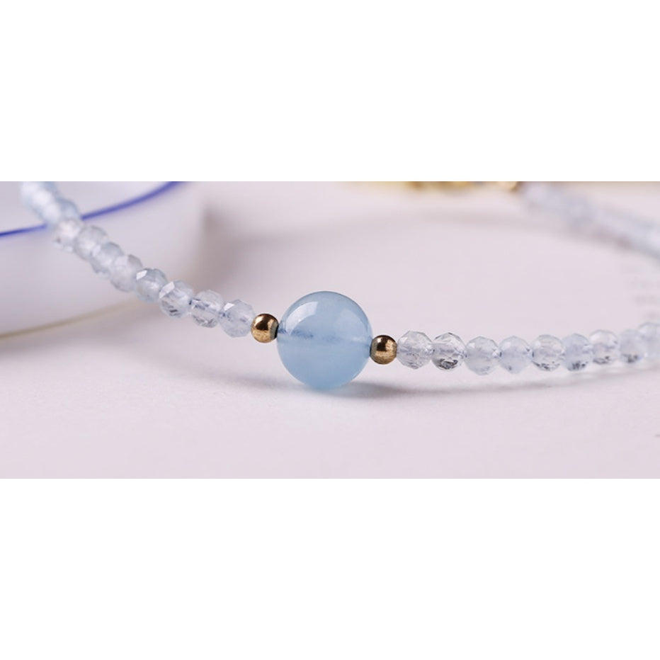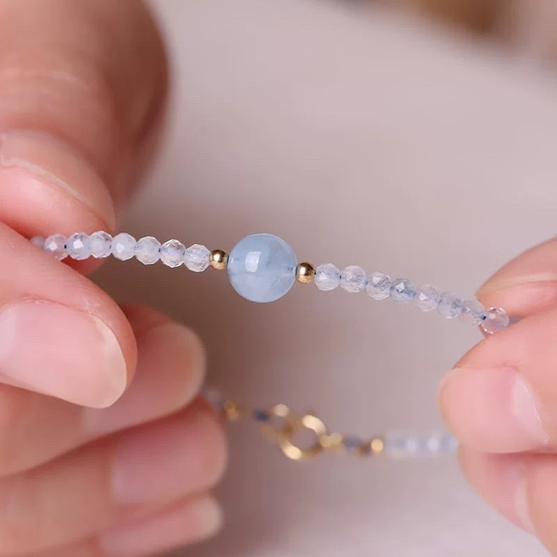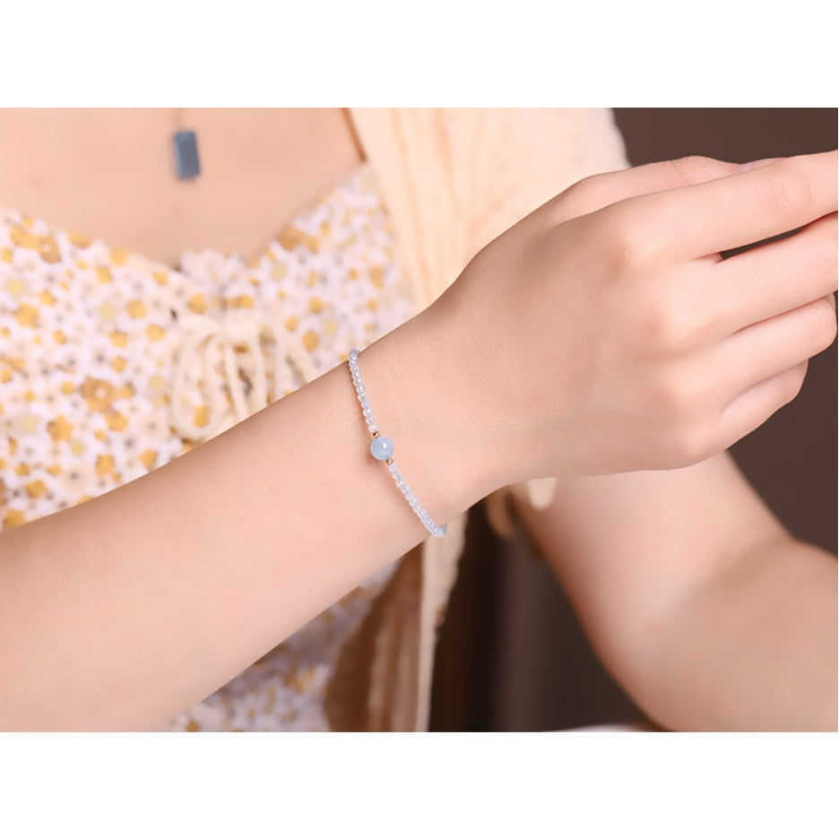 🔥現貨🔥【清新海藍】淡藍天然海藍寶手鍊女生小眾設計感閨蜜鍍14k簡約水晶手串蝦皮購物聖誕節情人節生日禮物