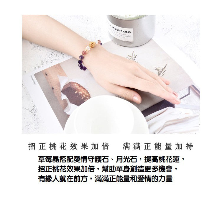 1、佩戴草莓晶有助於提升愛情運勢,又能讓思考變得更清晰及令心境平和安詳。