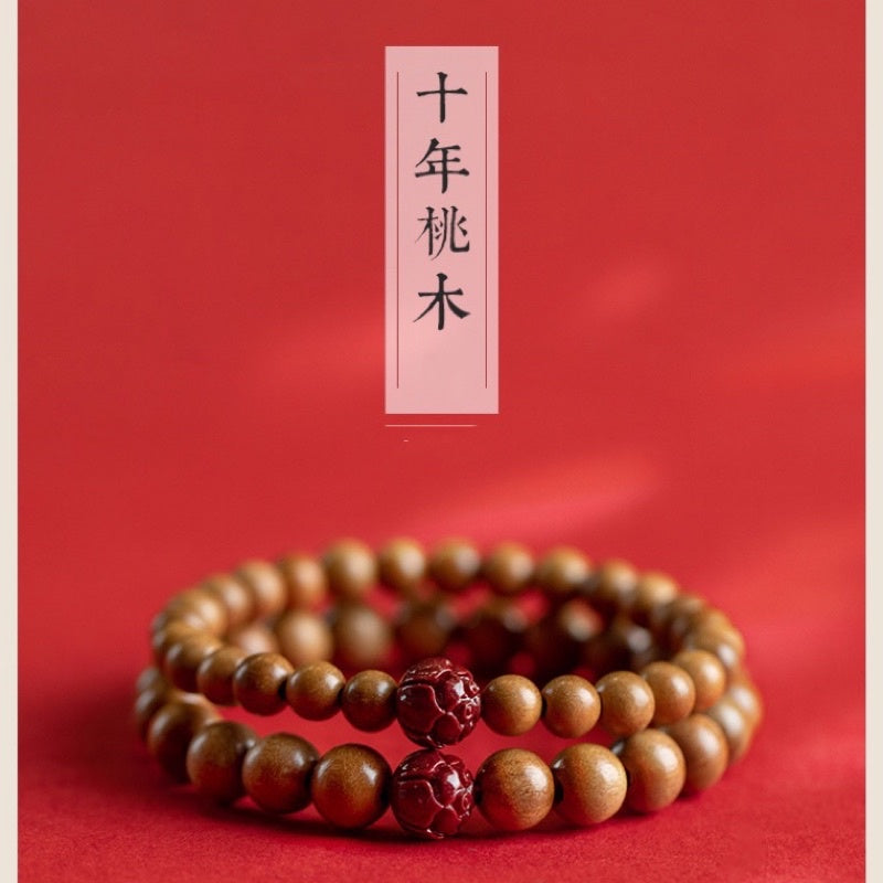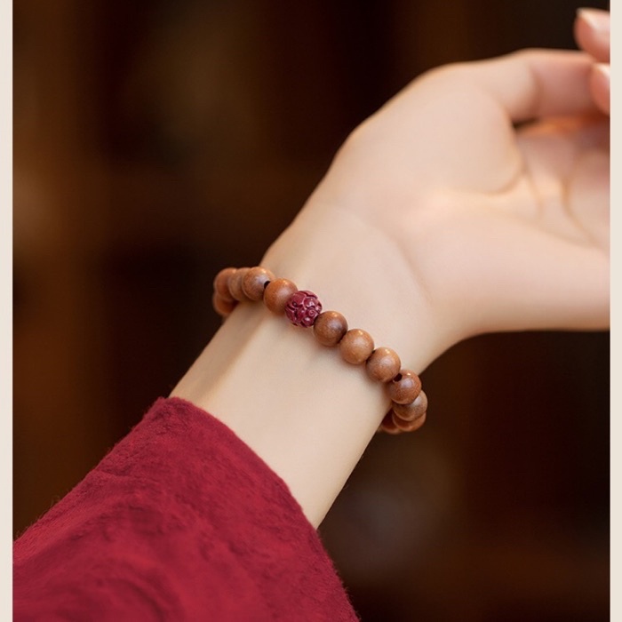 🔥現貨🔥【老桃木硃砂】文藝復古男女蓮花硃砂手串老桃木手串民族風本命年木首飾原創設計【飾品批發】