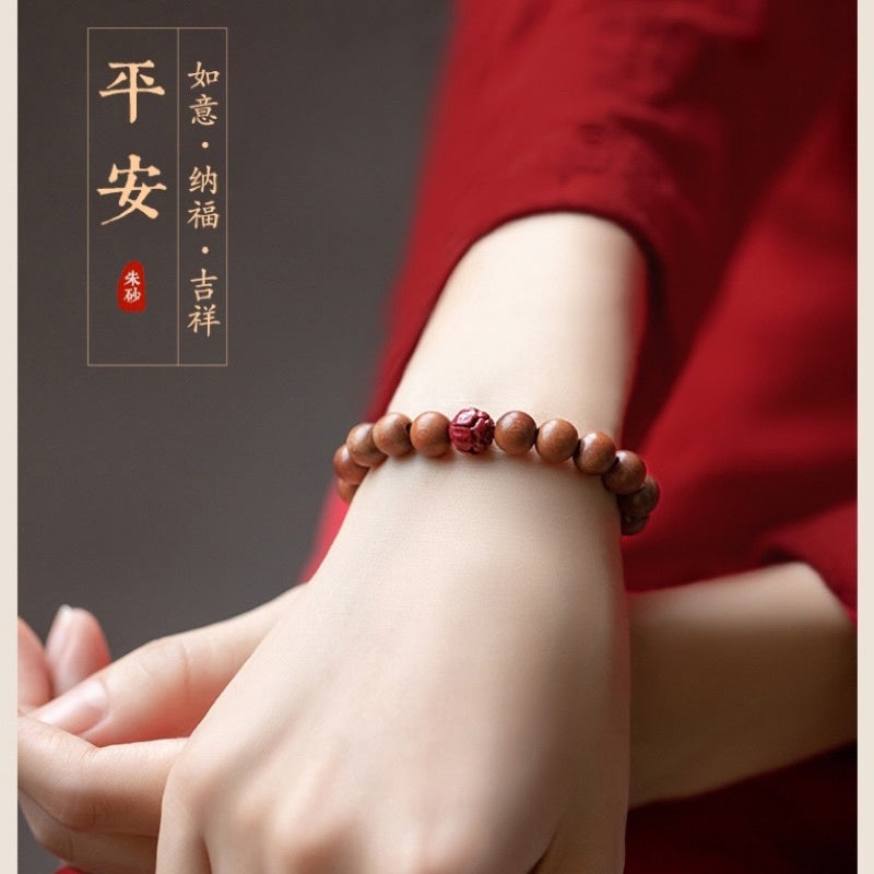 根據硃砂所具有的傳統寓意,特將硃砂研製成各種飾品,其通紅亮眼,精美異常。據民間相傳,佩戴硃砂飾品能化解太歲,辟邪消災,助睡眠,通血脈,療百病,非常適合有車一族、小孩、老人、上班族、醫生、護士等人群佩戴或安放。