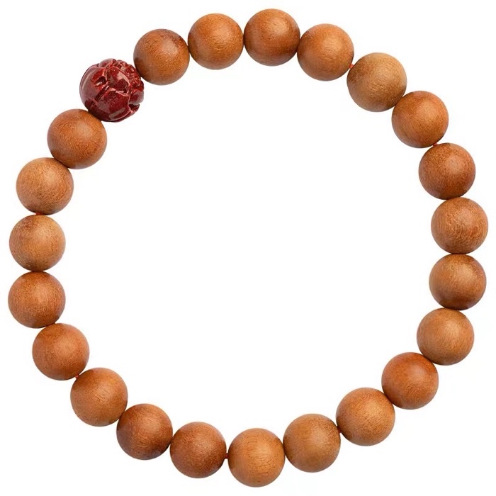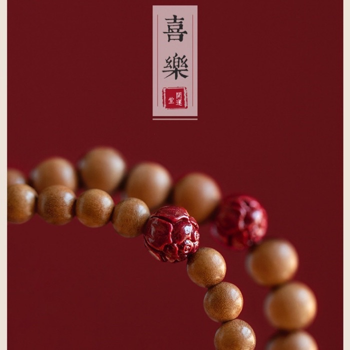 在佛教的文化里,硃砂常被做成佛珠、念珠,用以持佛念經時使用,其能使人沉心靜氣,心神安定,意念集中、智慧提升,是禮佛之人必備的吉祥物。