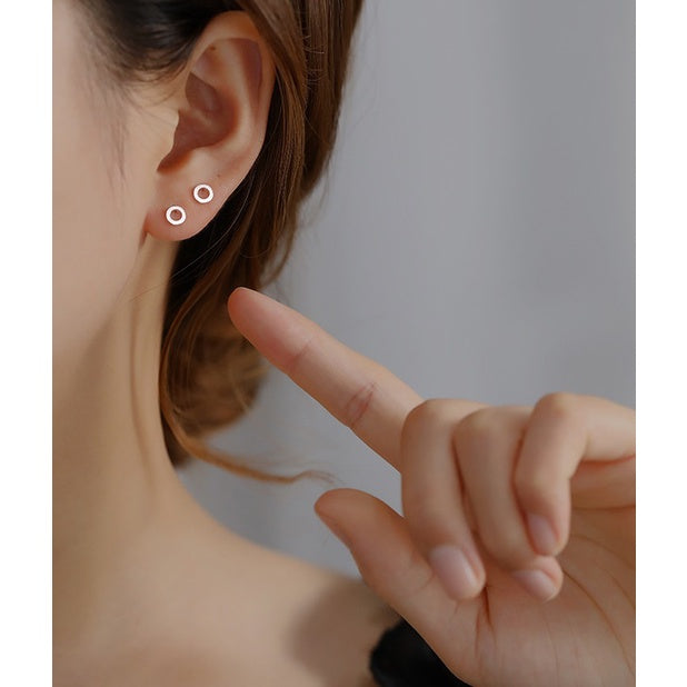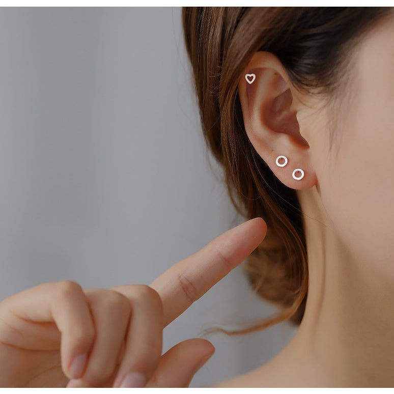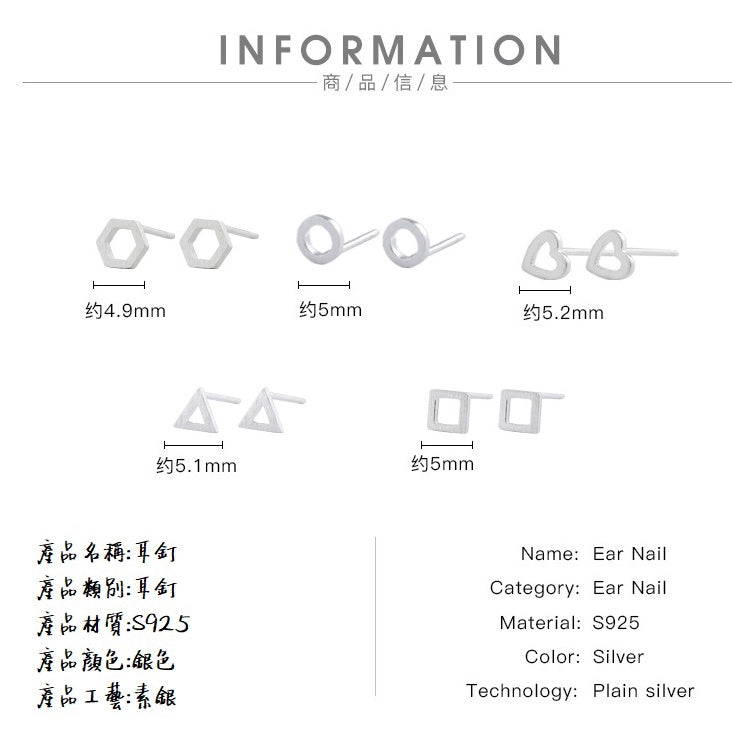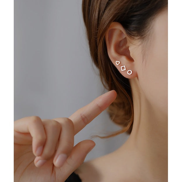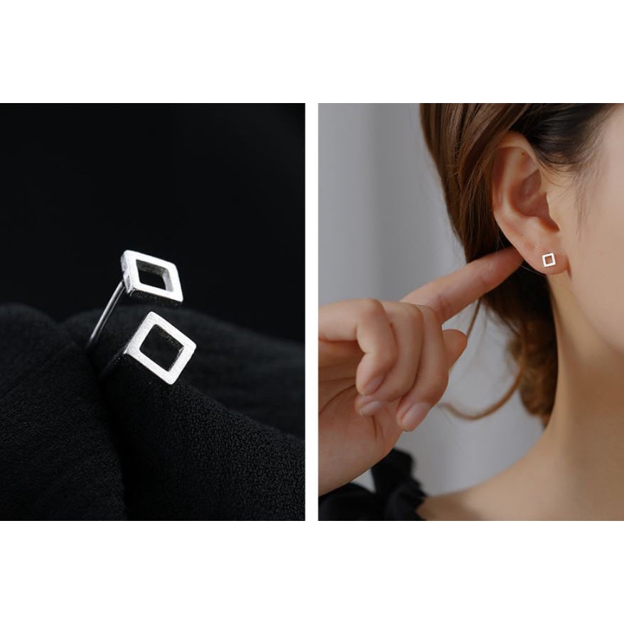 🔥現貨🔥S925銀通體拉絲鏤空圖形耳釘女韓版個性簡約創意耳飾品"開運堂"