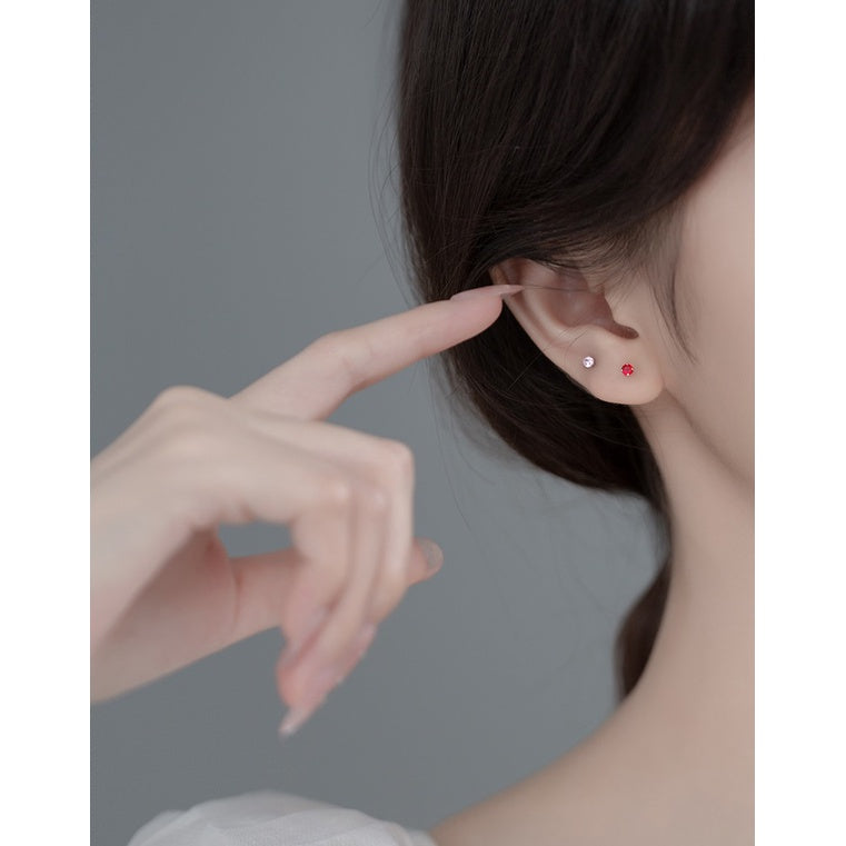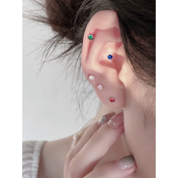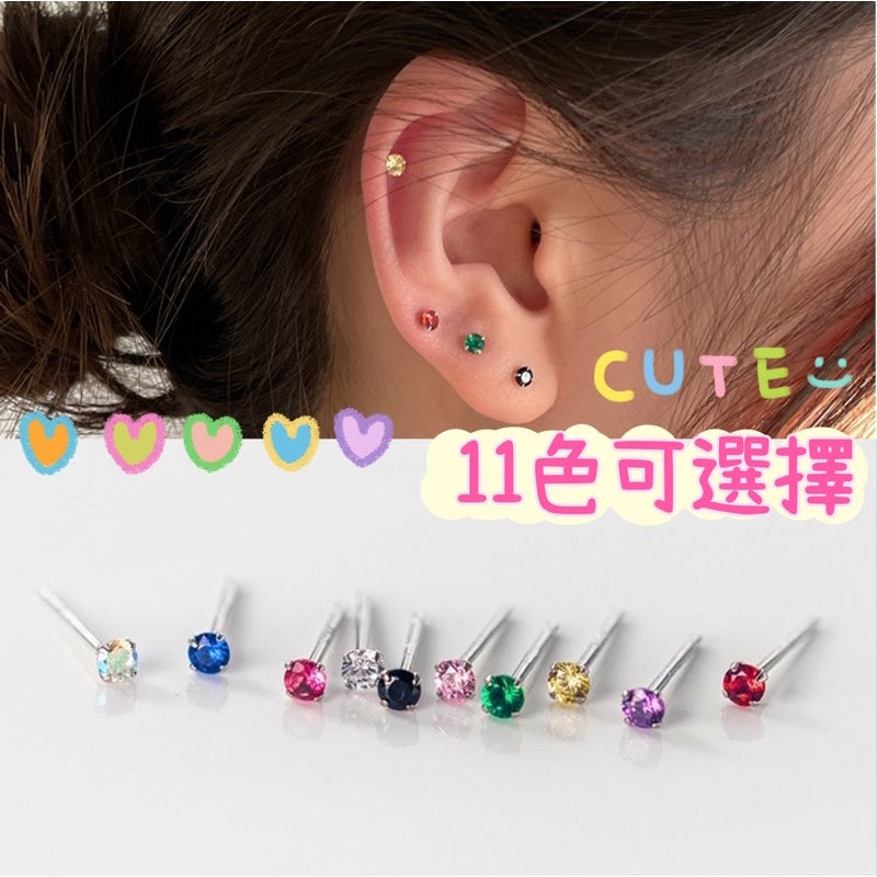 🔥現貨🔥【鋯石耳釘】S925銀迷你彩鑽單鑽耳釘養耳洞小巧睡覺不用摘女耳飾【開運堂】