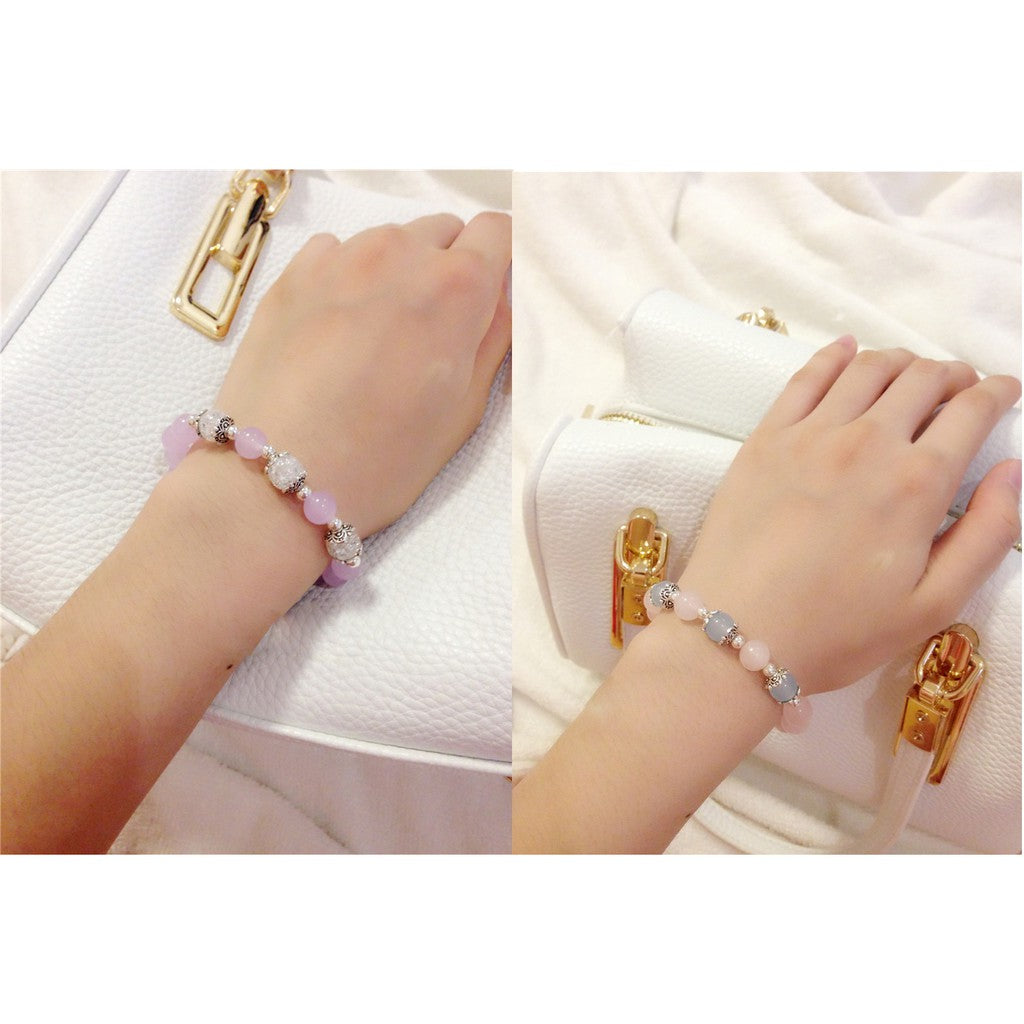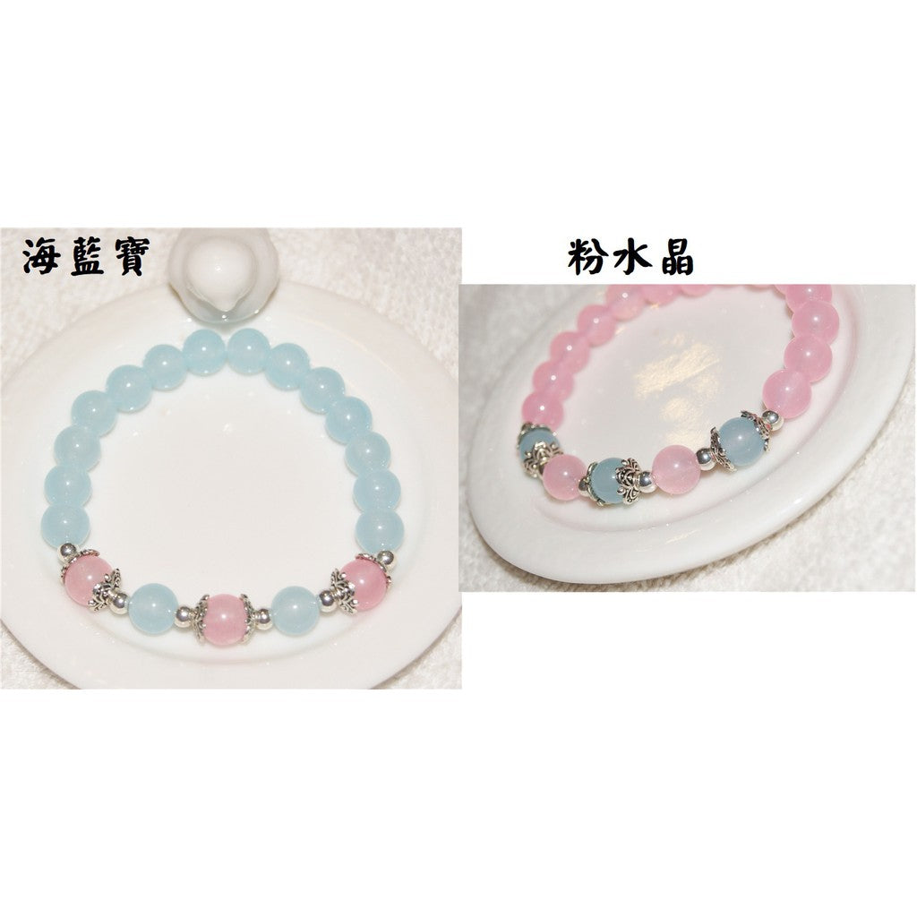 🔥現貨🔥粉水晶海藍寶紫玉髓鍍銀串珠手鍊女生手鍊【開運堂】