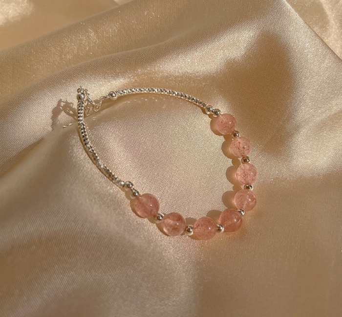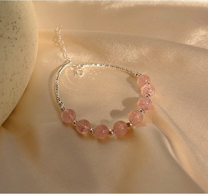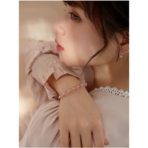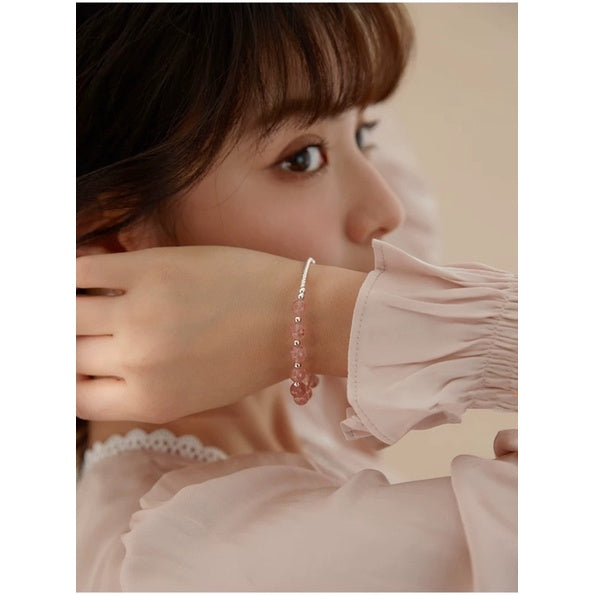 (S2305Q)現貨s925銀手鍊女甜美草莓晶手鍊氣質圓珠手鍊夏季手飾品【開運堂】