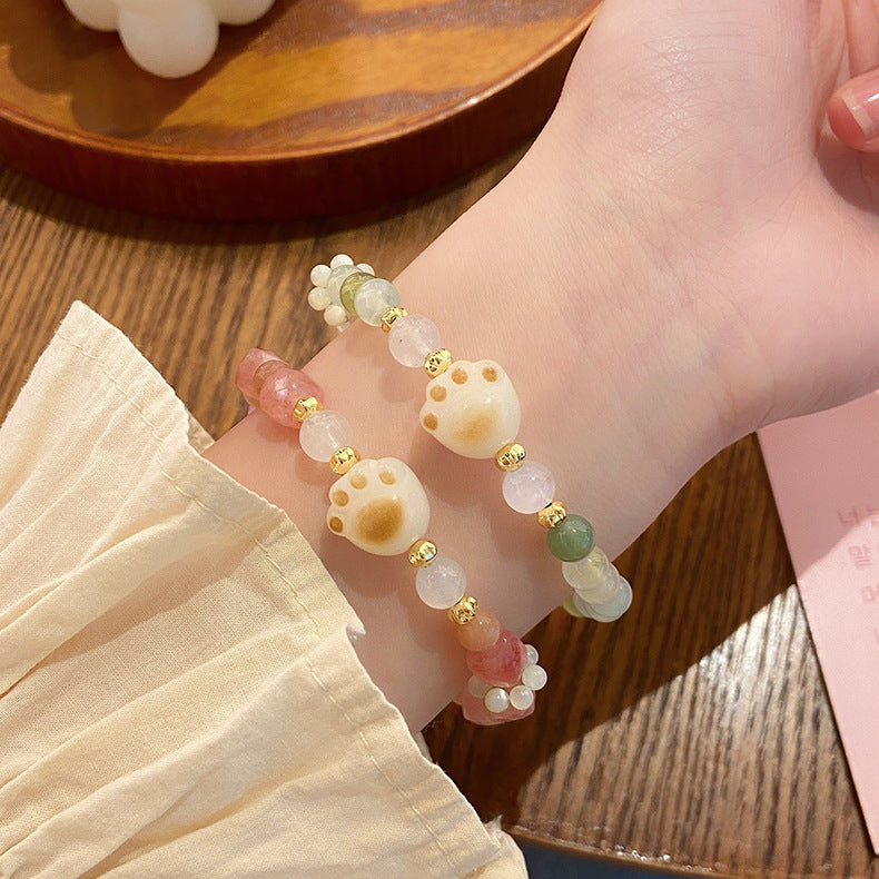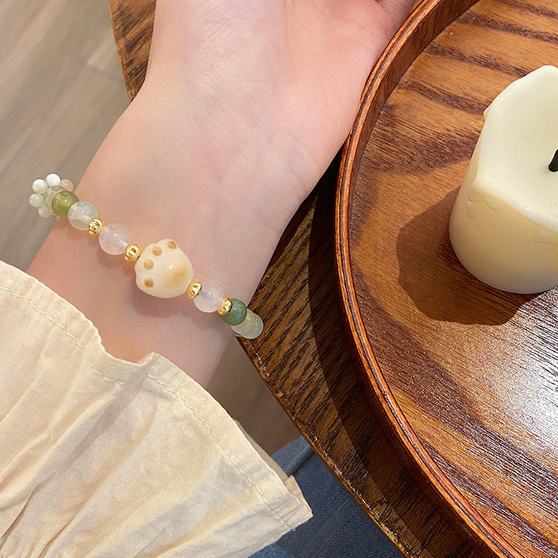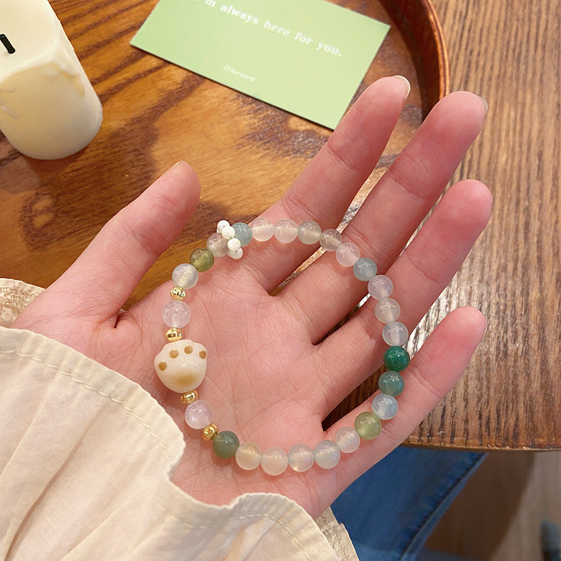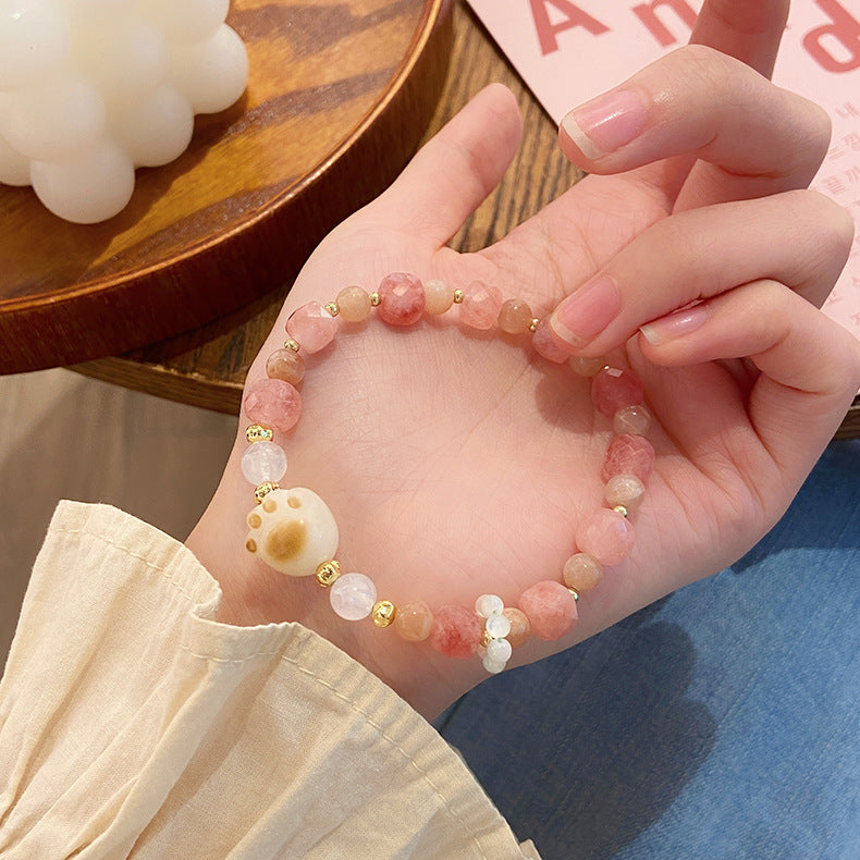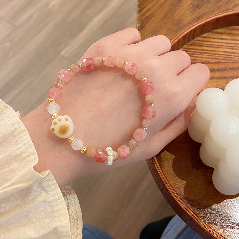 🔥現貨🔥草莓晶貓咪手串新款青檸軟萌炭燒貓爪蘋果綠瑪瑙手鍊甜美"開運堂"