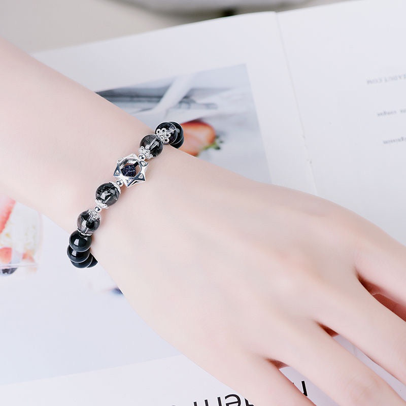 🔥現貨🔥 天然黑曜石黑髮晶情侶手鍊一對情侶款手串女款夏生日禮物送女朋友情人節聖誕節禮物
