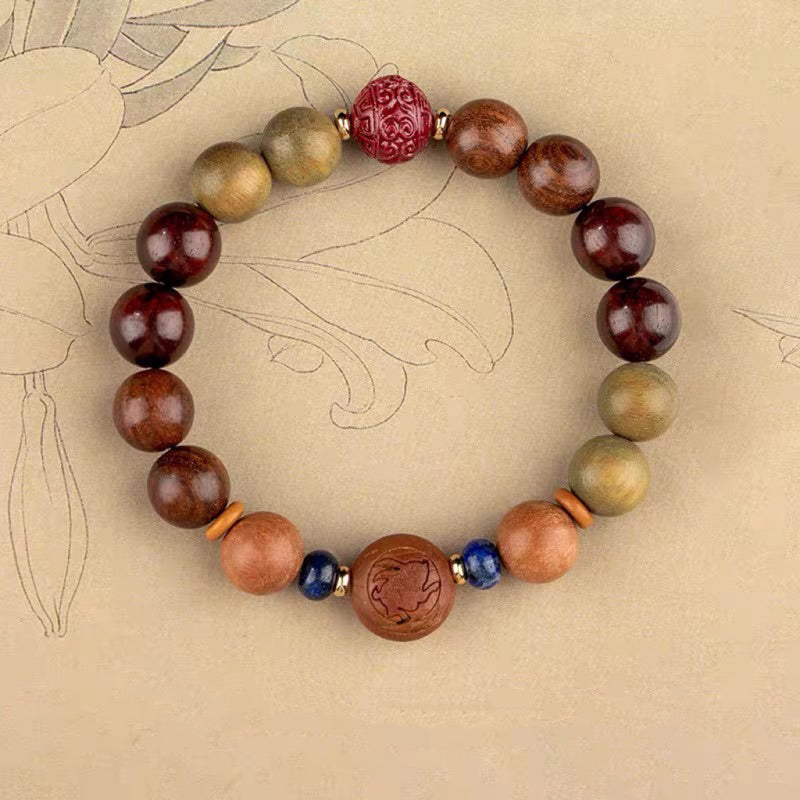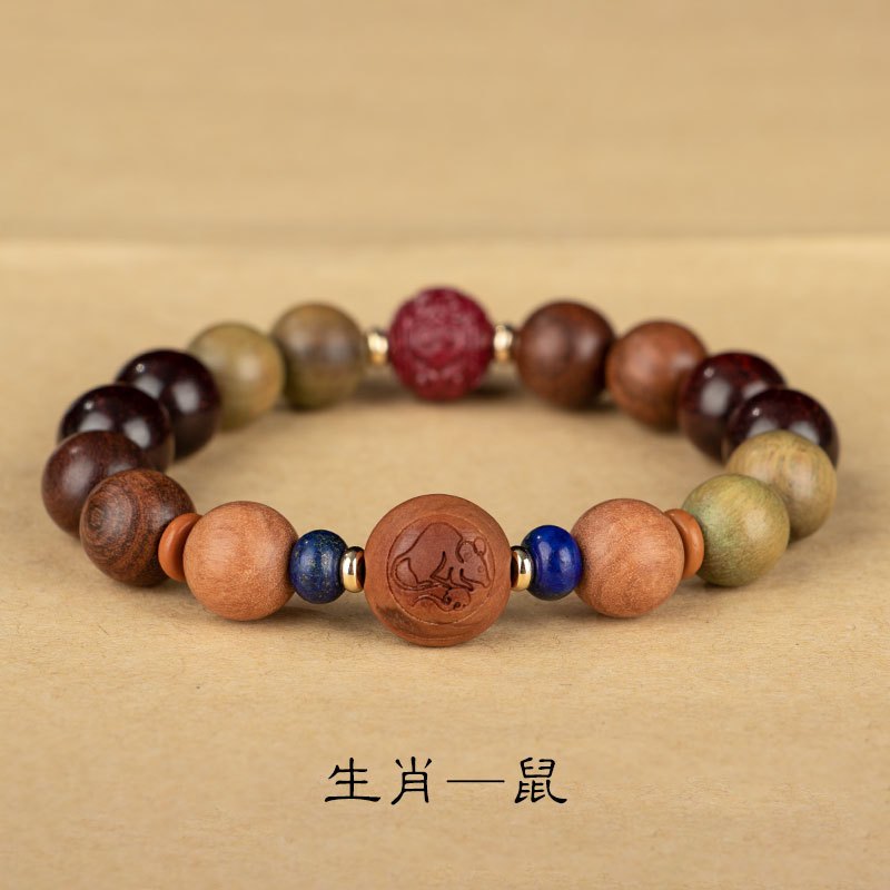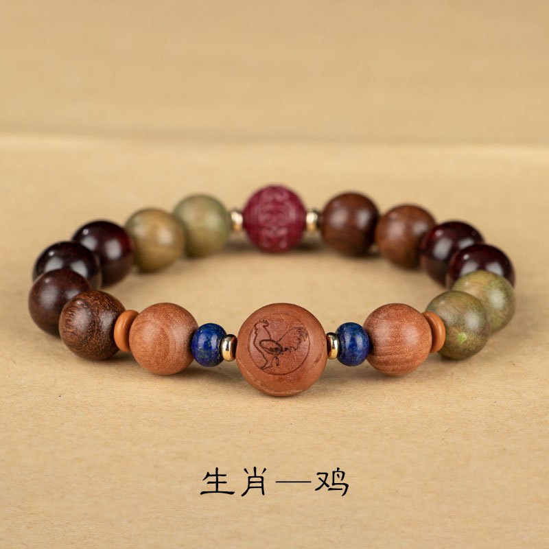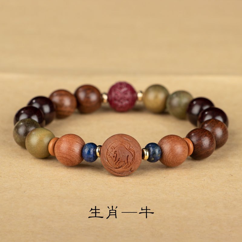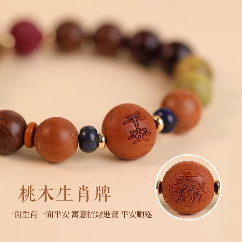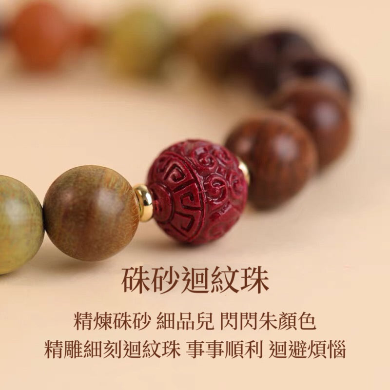 現貨2024解太歲紫南宮過爐3月7日龍牛兔羊狗中國風十二生肖綠檀木手串龍生肖手鍊硃砂轉運珠男女情侶款手鍊