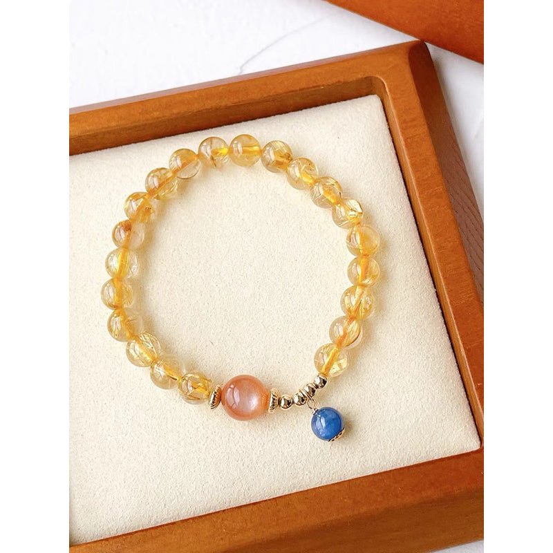 現貨 天然金髮晶太陽石藍晶石三圈鍍金手鍊招財手鏈情侶生日禮物聖誕節禮物