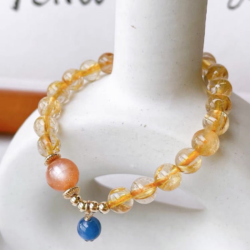 金髮晶7mm, 太陽石10mm 藍晶石5mm