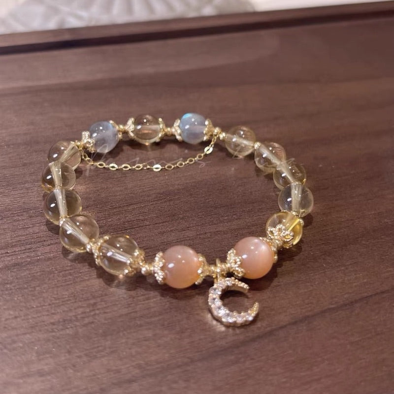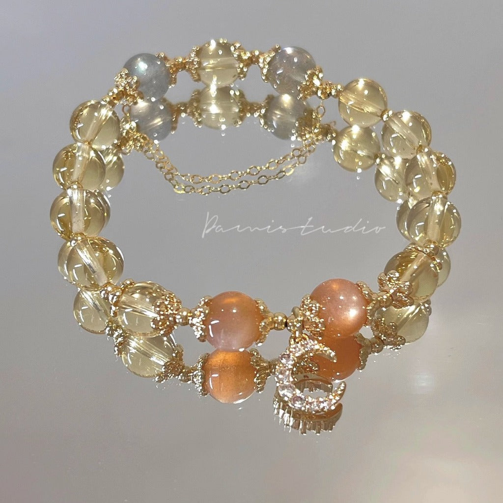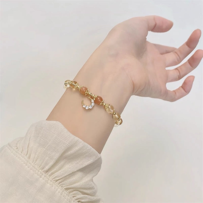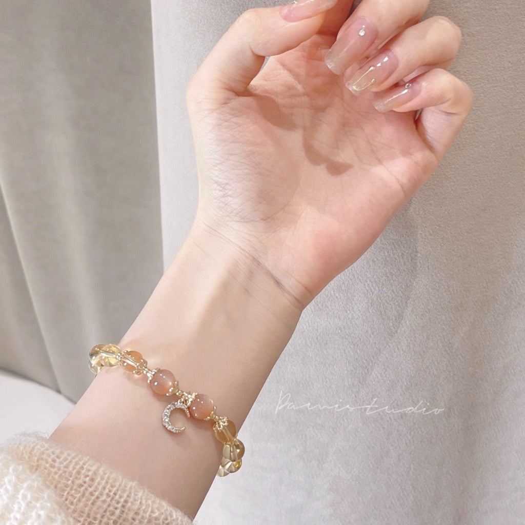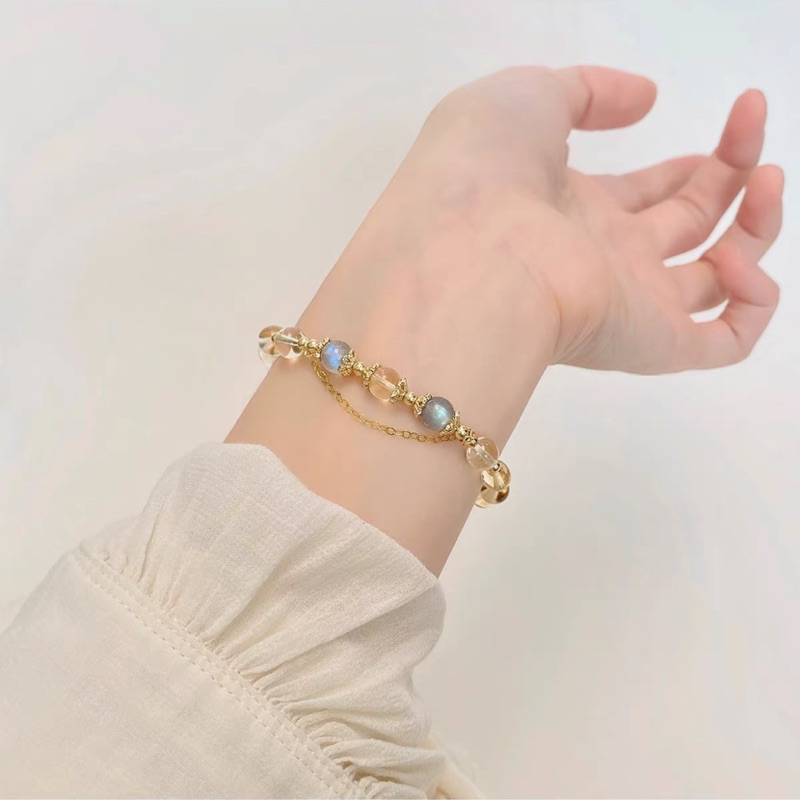 現貨8mm黃水晶手鍊月光石金太陽鍍14K金髮財水晶手串"開運堂"