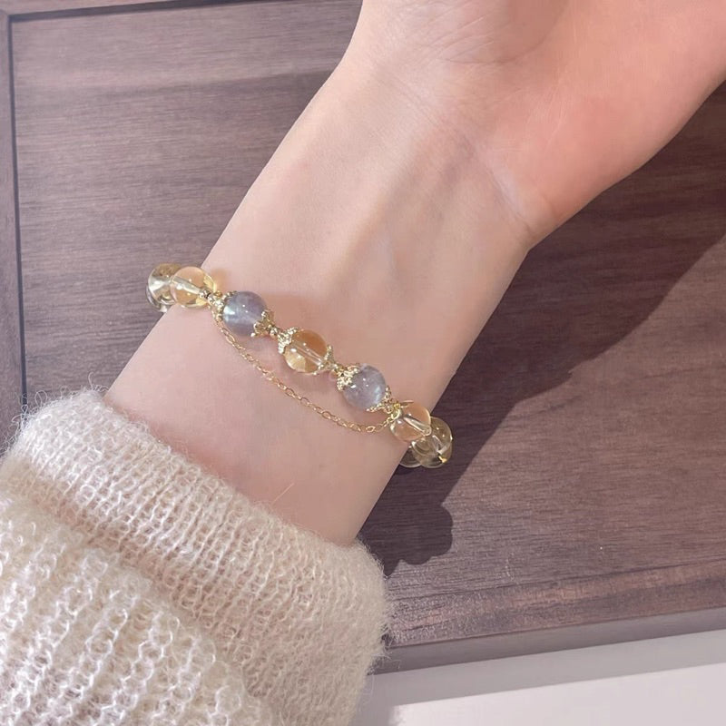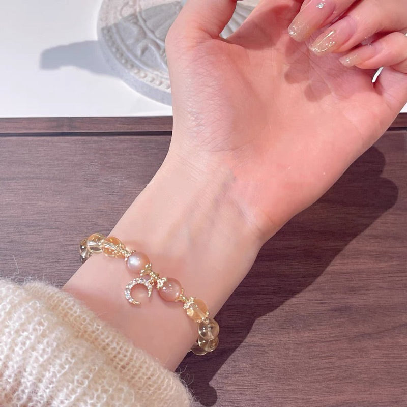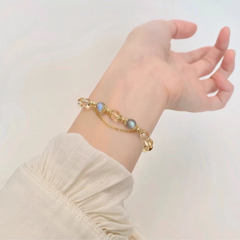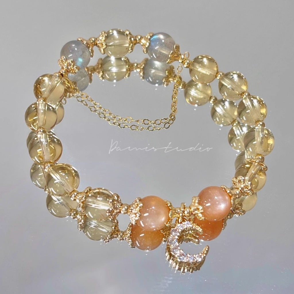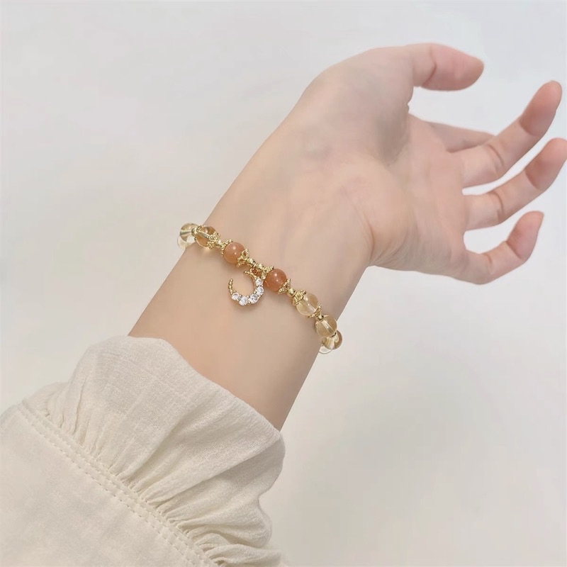 現貨8mm黃水晶手鍊月光石金太陽鍍14K金髮財水晶手串"開運堂"