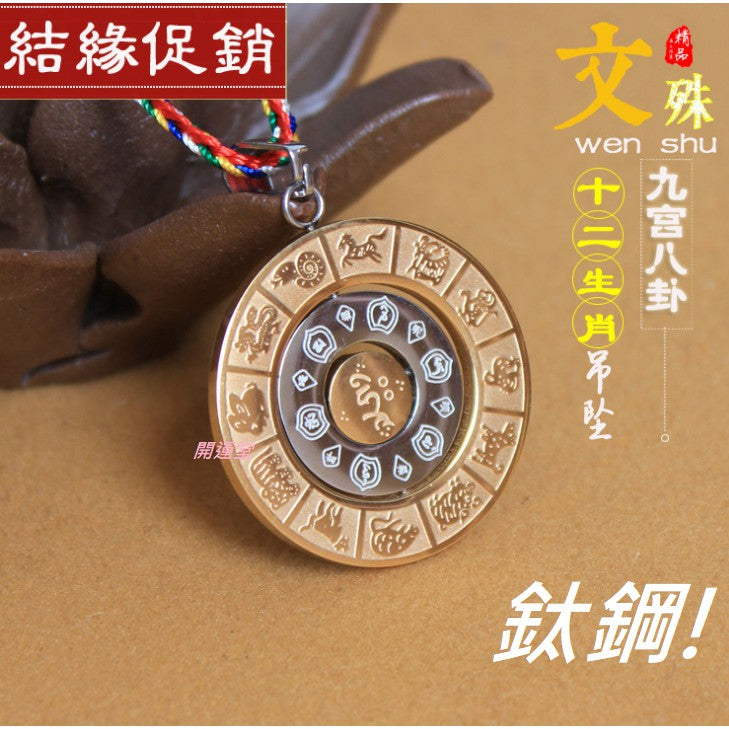 產品名稱:九宮八卦生肖咒輪吊墜 材 質: 鈦鋼