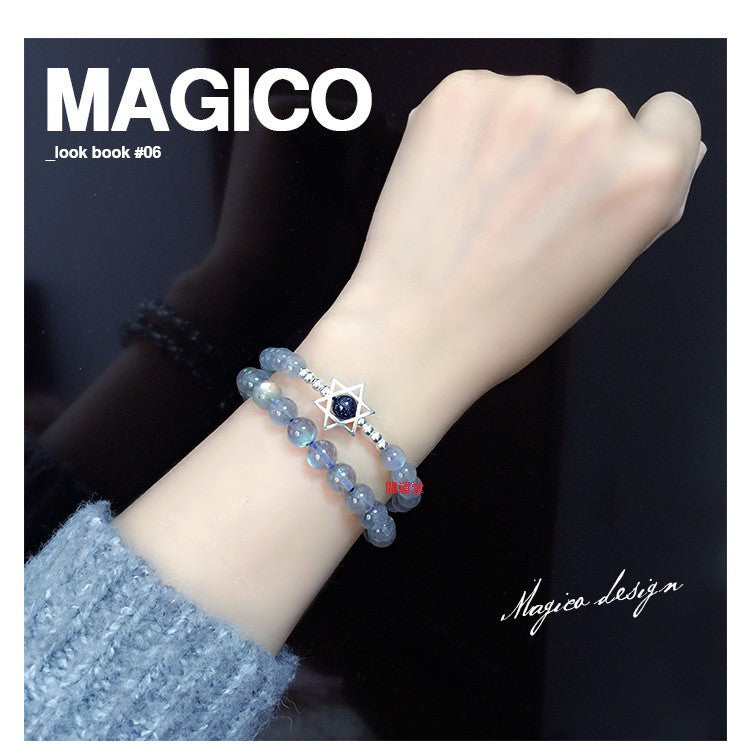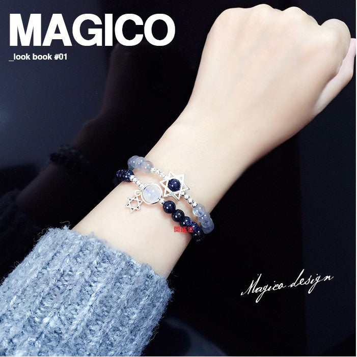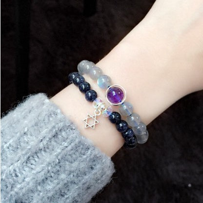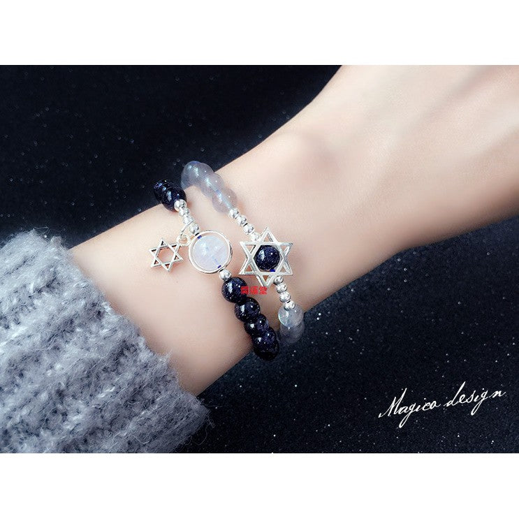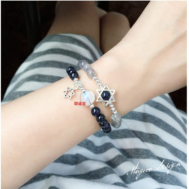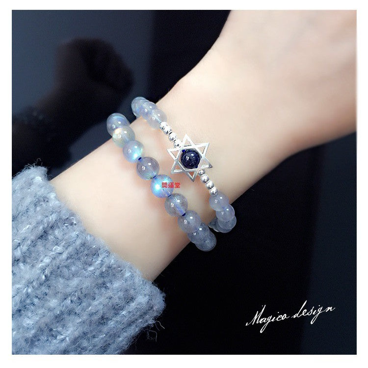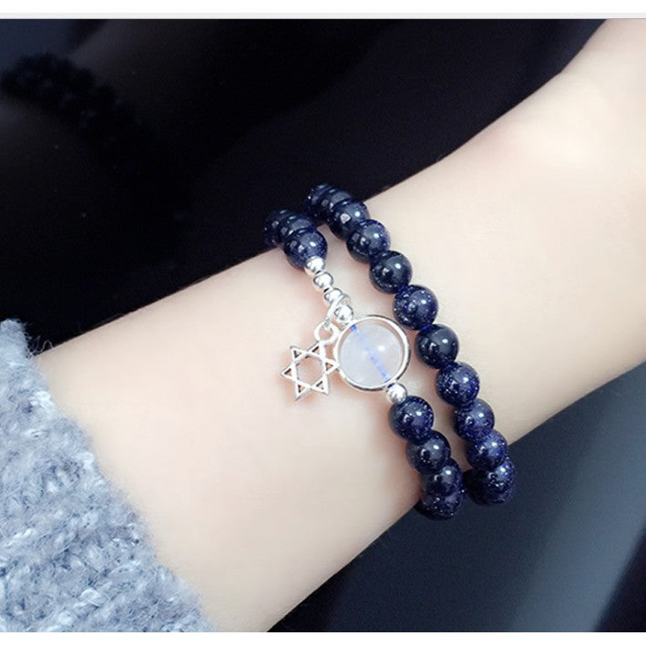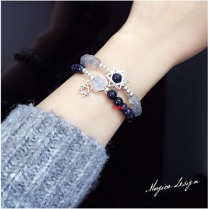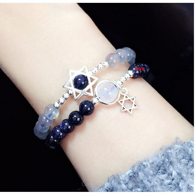 🔥現貨🔥天然水晶雙圈6mm月光石藍砂石星星手鍊守護愛情助學業男女情侶手鍊送女友【飾品批發】