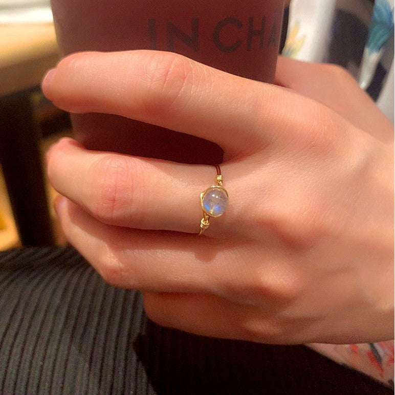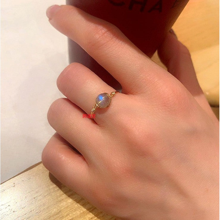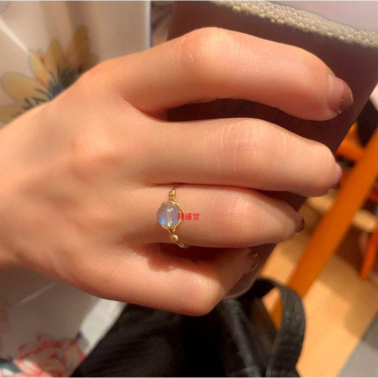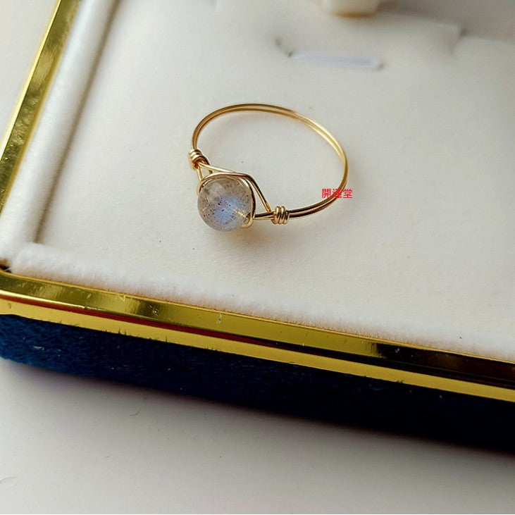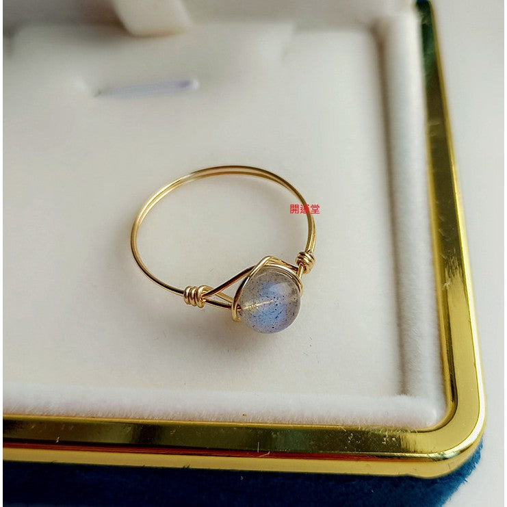 🔥現貨🔥【戒圍5cm】灰月光石戒指原創輕奢手工鍍14K包金線圓珠指環女款【開運堂】