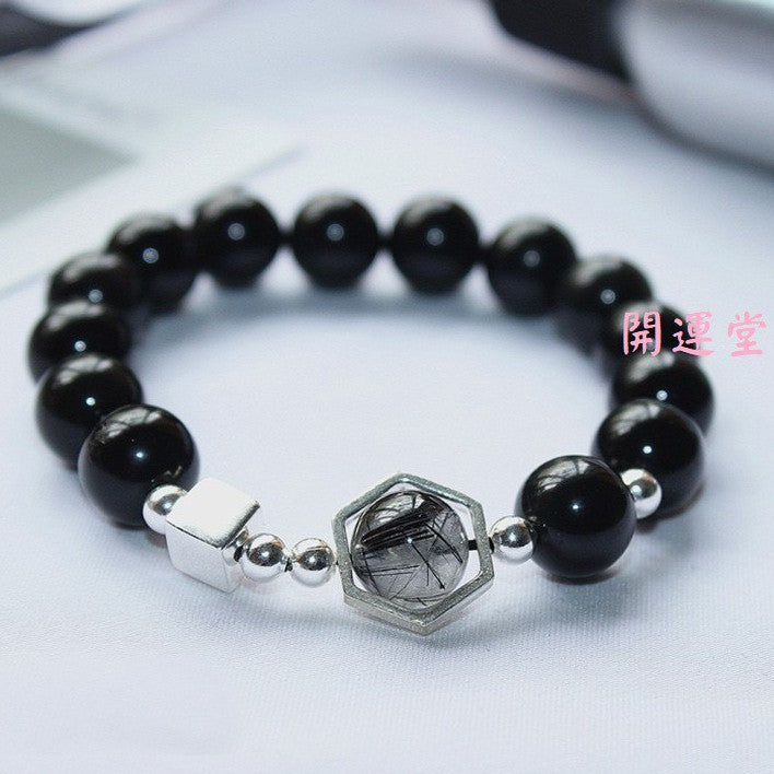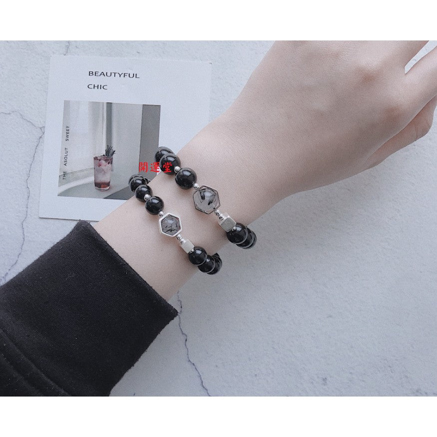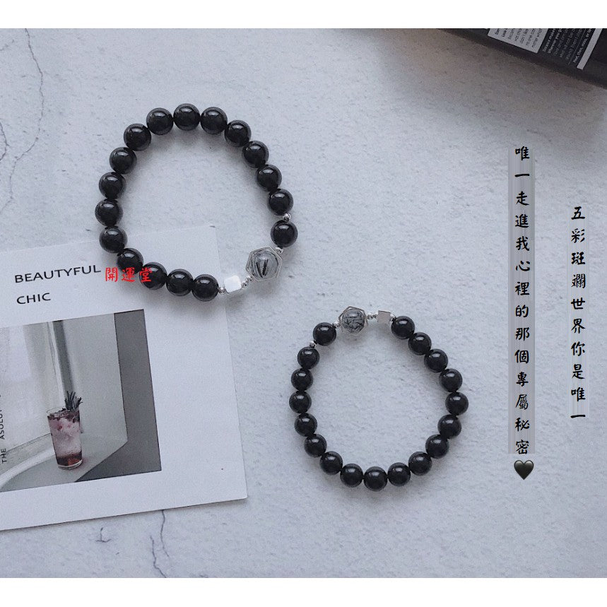 🔥現貨🔥【防小人帶財助事業成功】天然彩虹眼黑曜石手鍊男 女情侶手串原創設計黑髮晶情侶生日禮物【飾品批發】