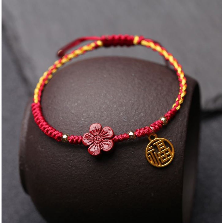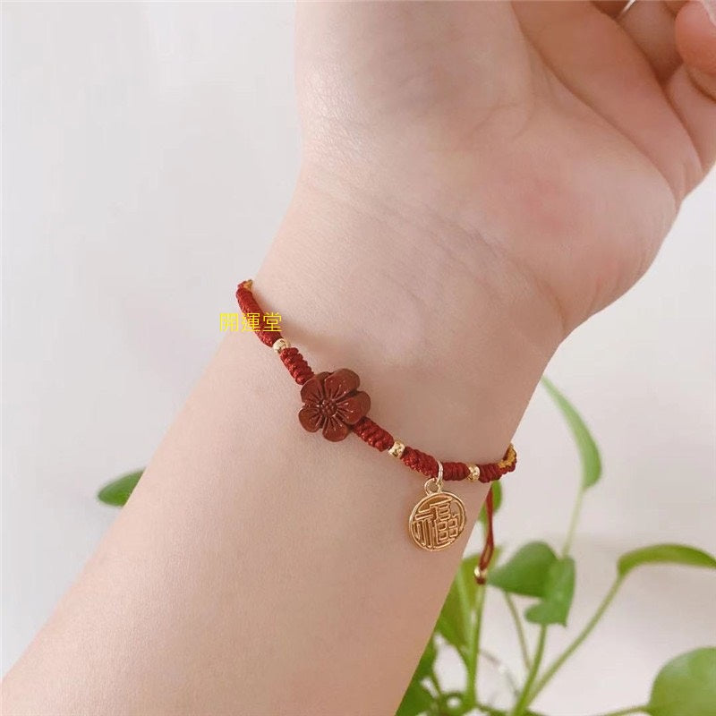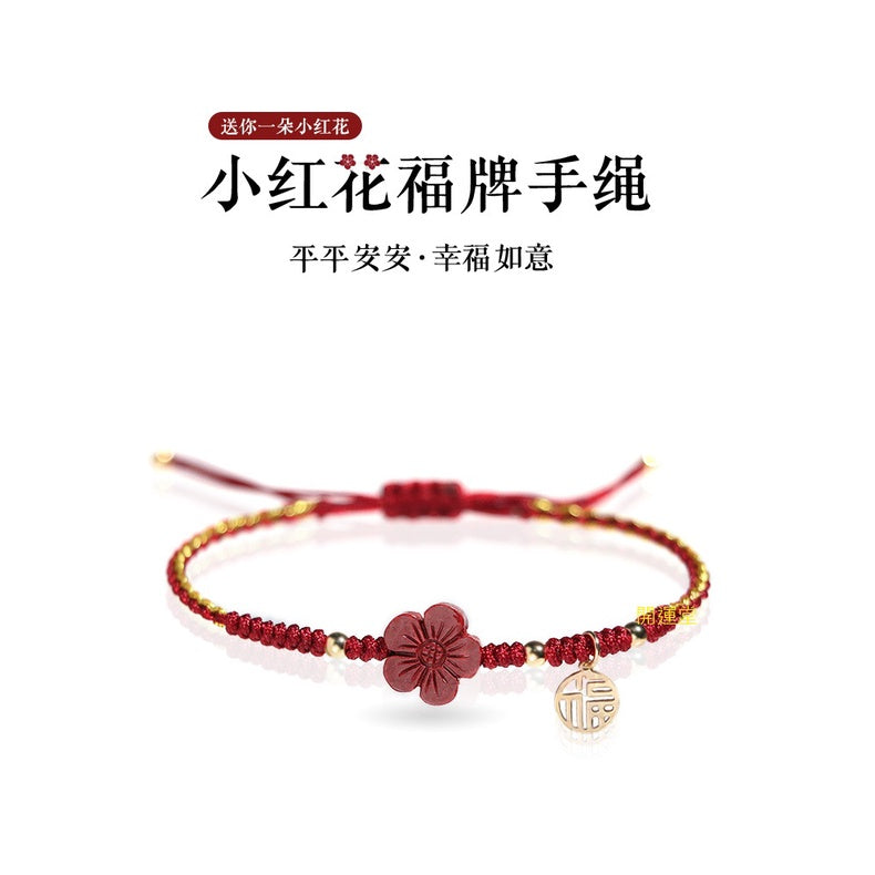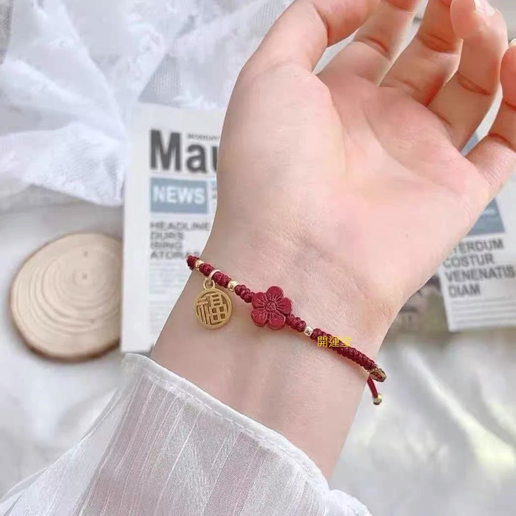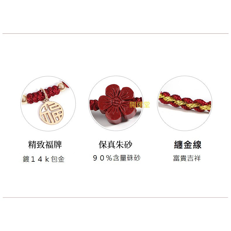 🔥現貨🔥送你一朵小紅花手工編織紅繩硃砂手鍊辟邪紫金砂紅繩福牌平安禮物【開運堂】