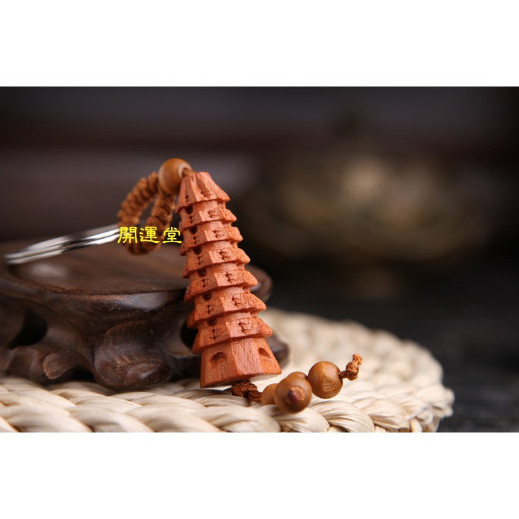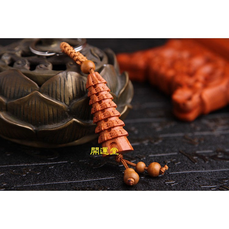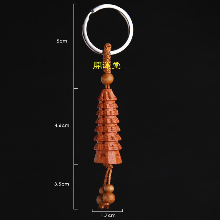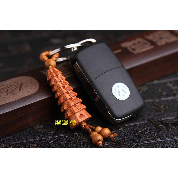 🔥現貨🔥文昌塔桃木鑰匙扣立體汽車鑰匙扣挂件汽機車鑰匙圈【飾品批發】