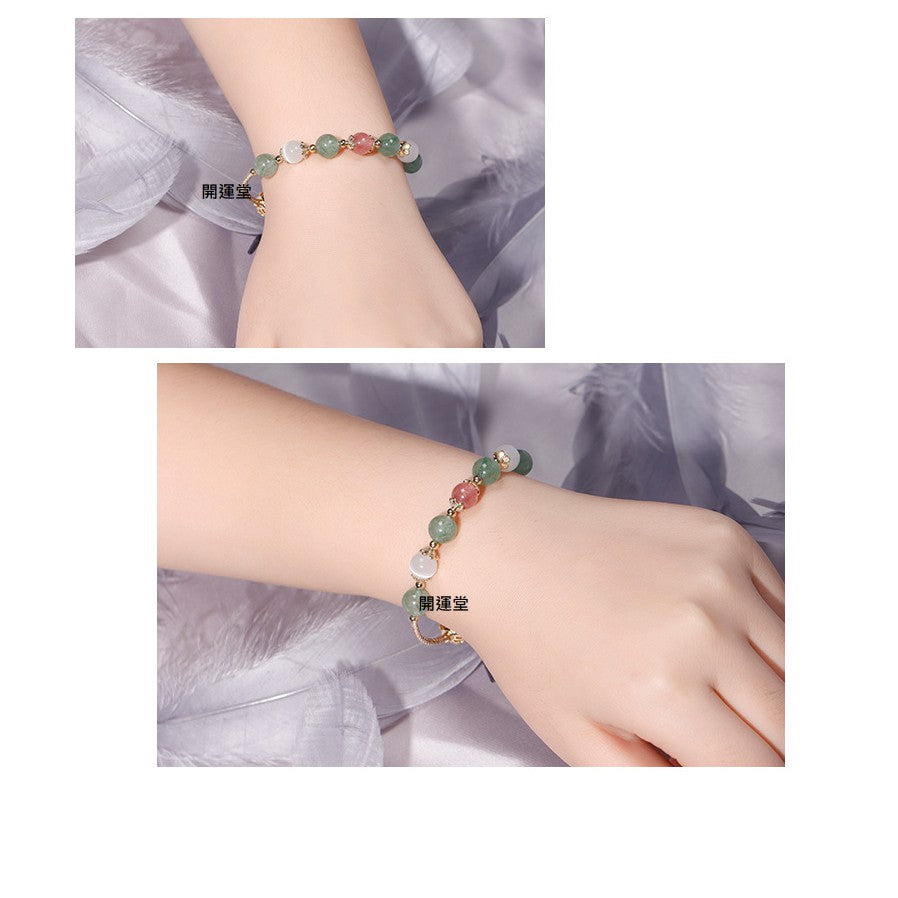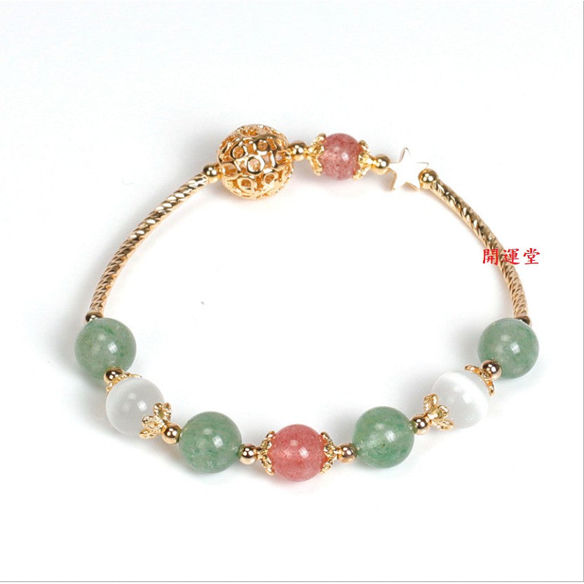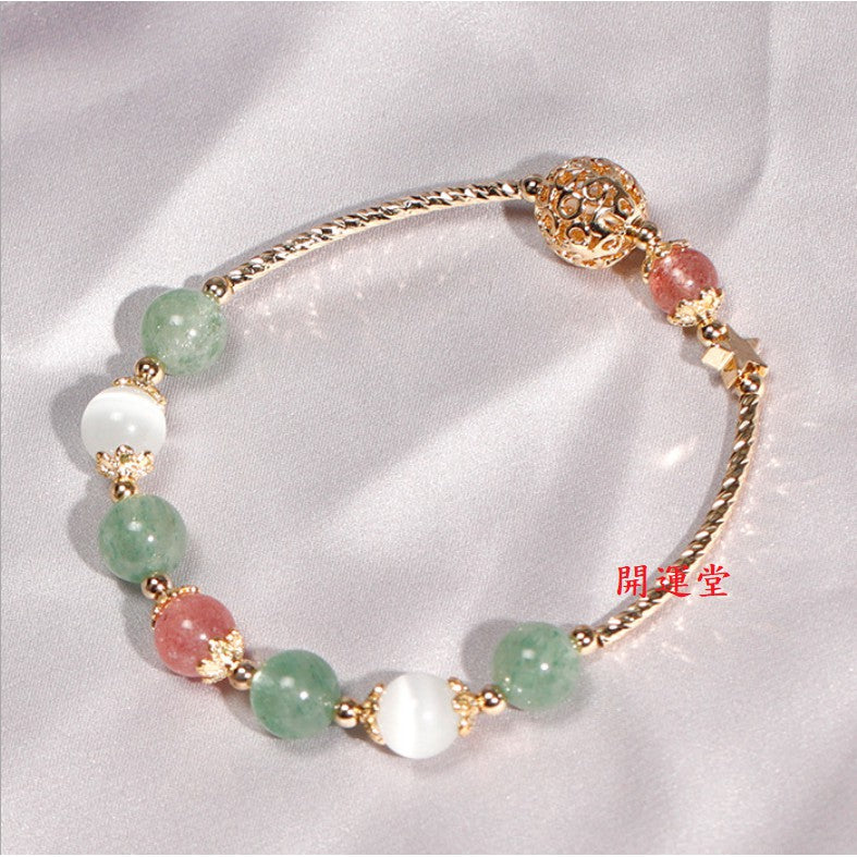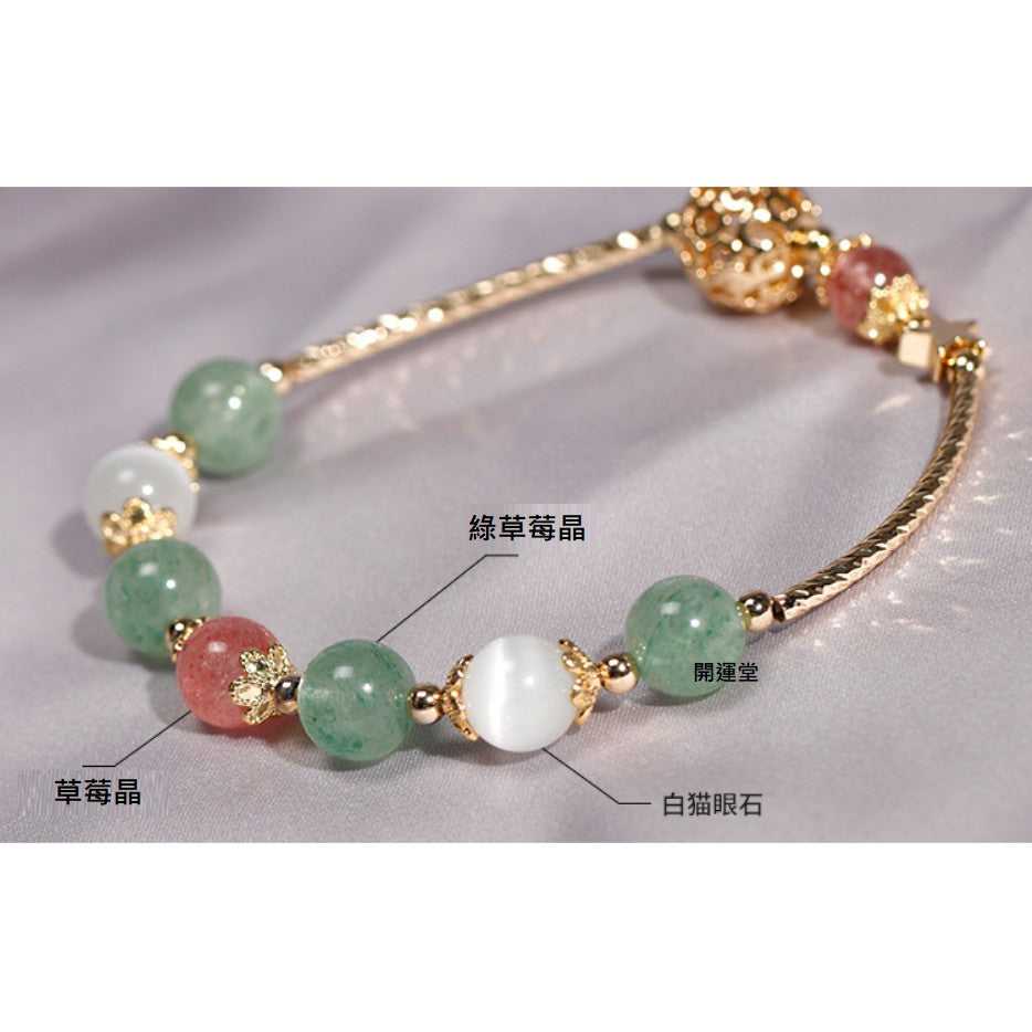 🔥現貨🔥天然綠草莓晶貓眼石閨蜜鍍金手鍊手串轉運招桃花【開運堂】