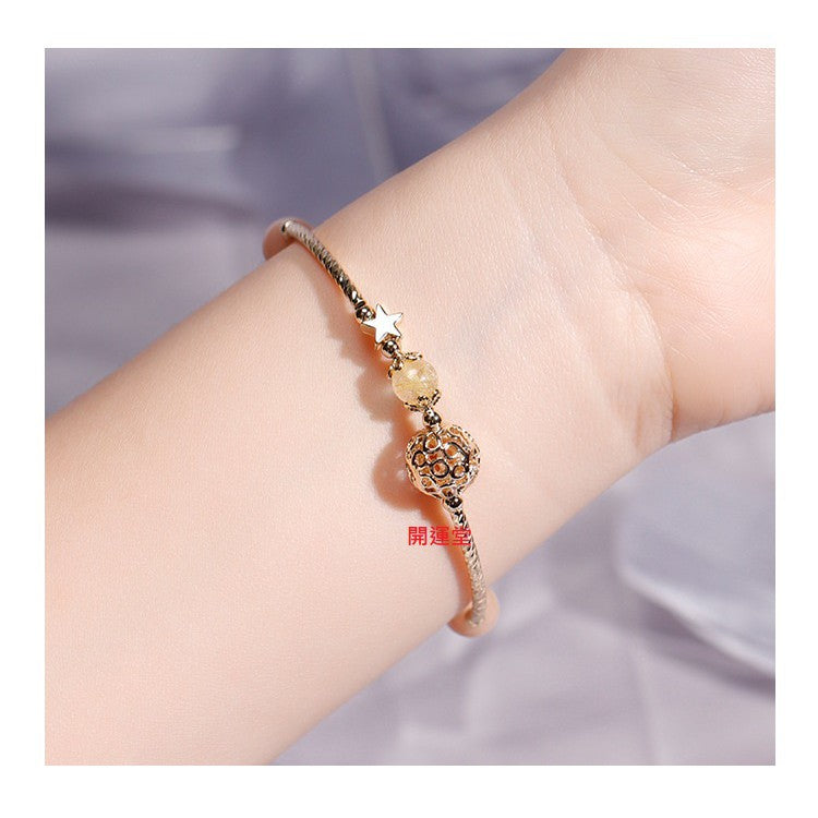 1、黃髮水晶象徵著財富,具有招財納、轉運的功效,故黃髮晶又稱財富水晶。黃髮晶散發出金燦燦的光茫,勾起人對財富的渴望,促進人積極奮鬥。黃髮晶能夠吸引財富,尤其是偏財。對於一些月事業心,創業的朋友,佩戴黃髮晶一個不錯的選擇。可助財源滾滾、事業興榮。