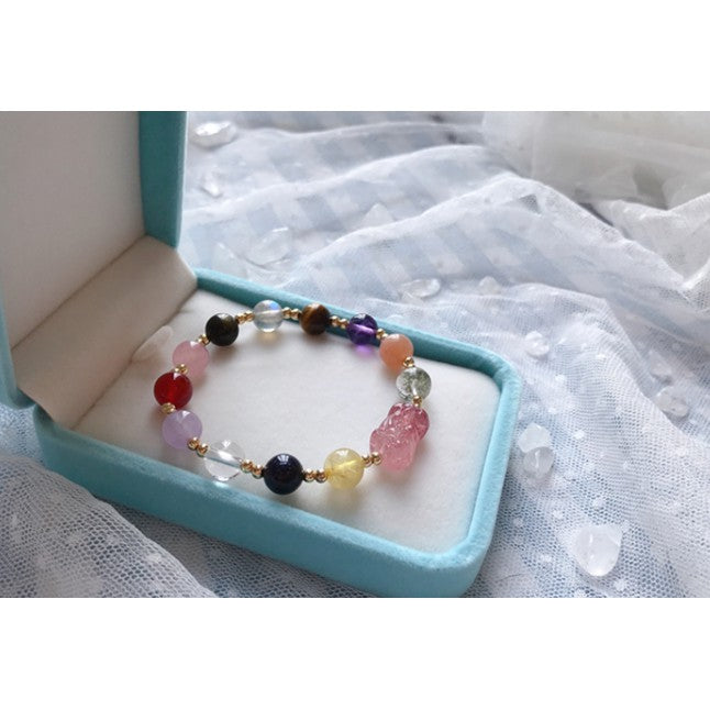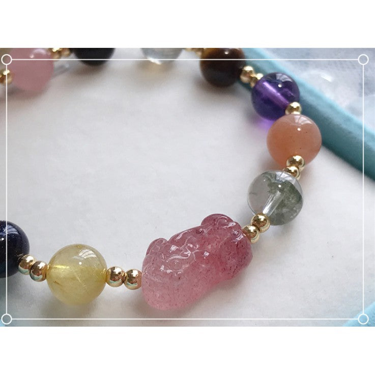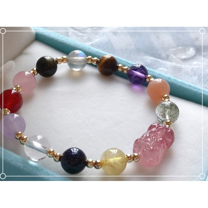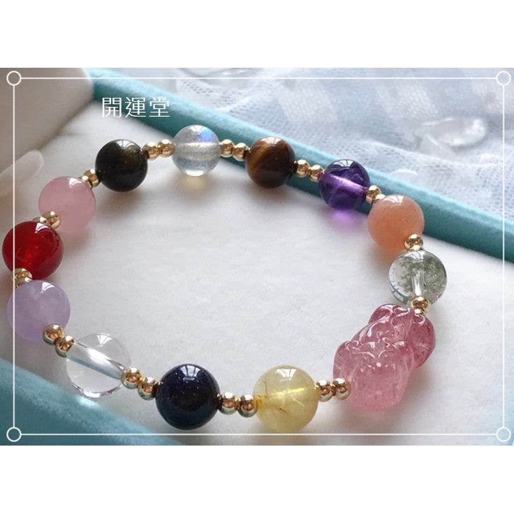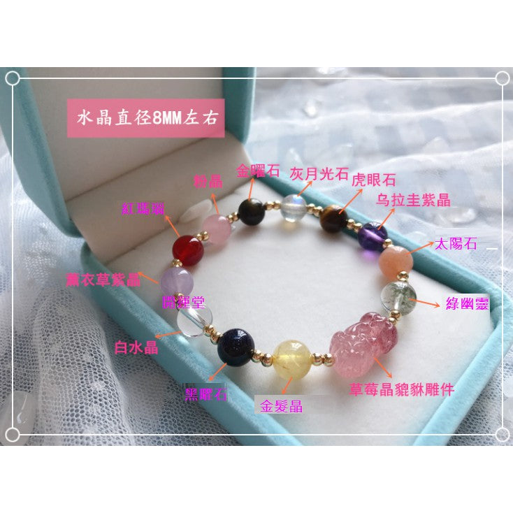 🔥台灣現貨925純銀鍍14k金貔貅手鍊天然水晶手鍊虎眼石,黑曜石月光石,紫水晶,草莓晶閨蜜手鏈禮物情人節禮物【開運堂】