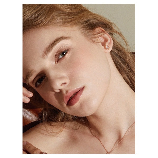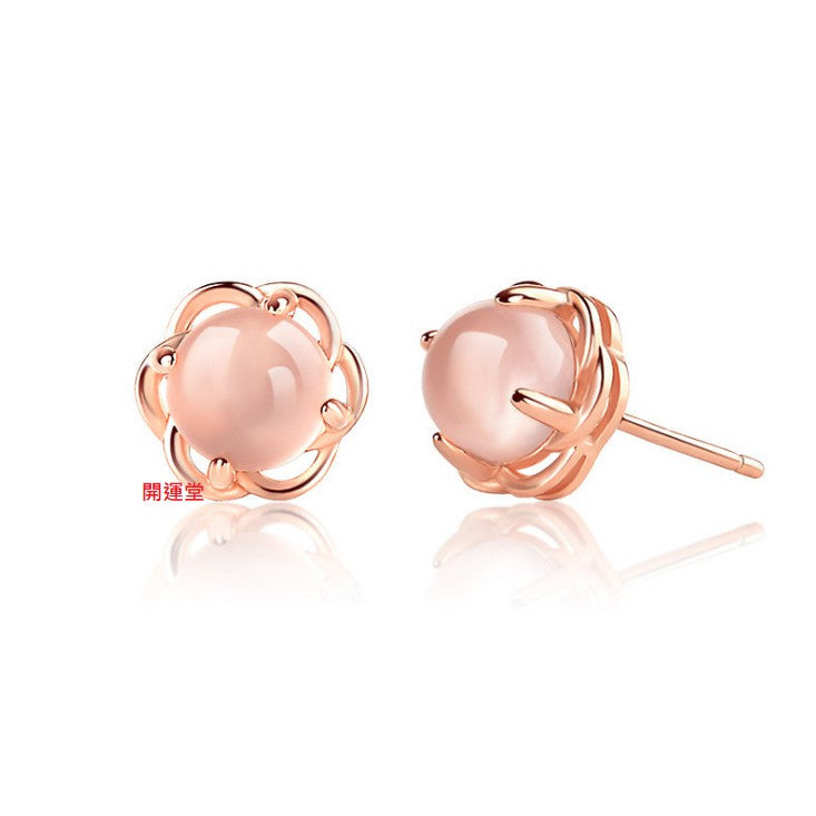 🔥現貨🔥一對韓版0.5cm玫瑰金粉水晶18K玫瑰金耳針耳釘女電鍍耳環氣質創意耳飾【開運堂】
