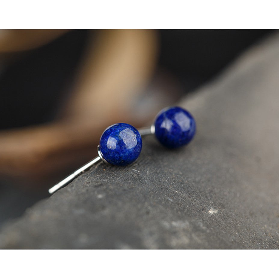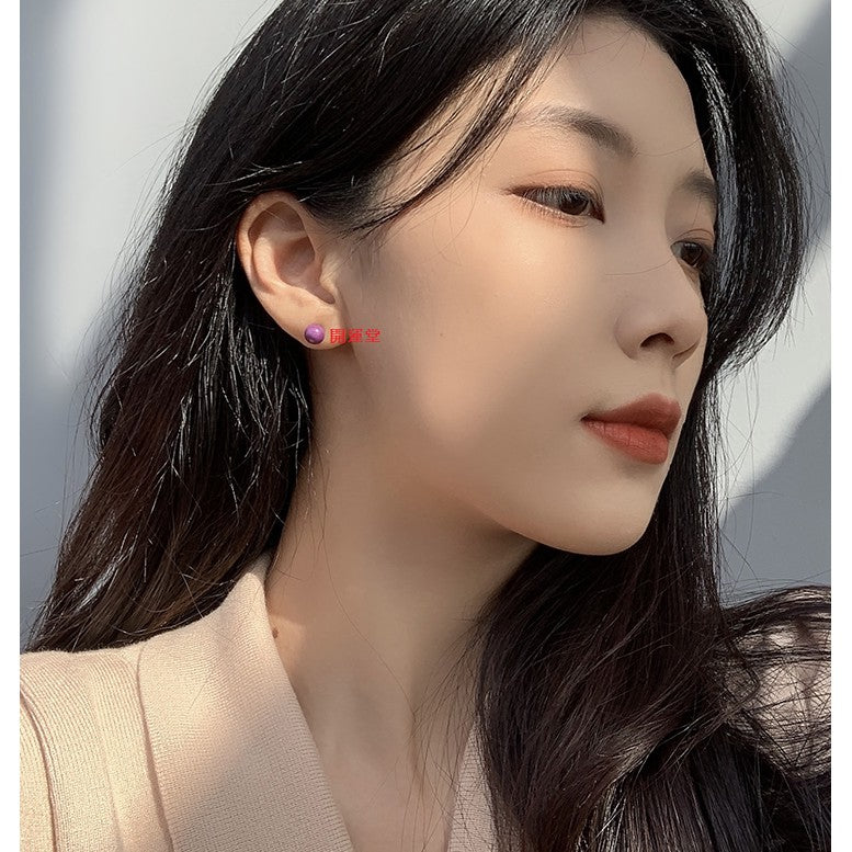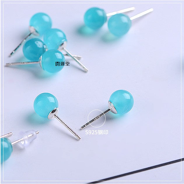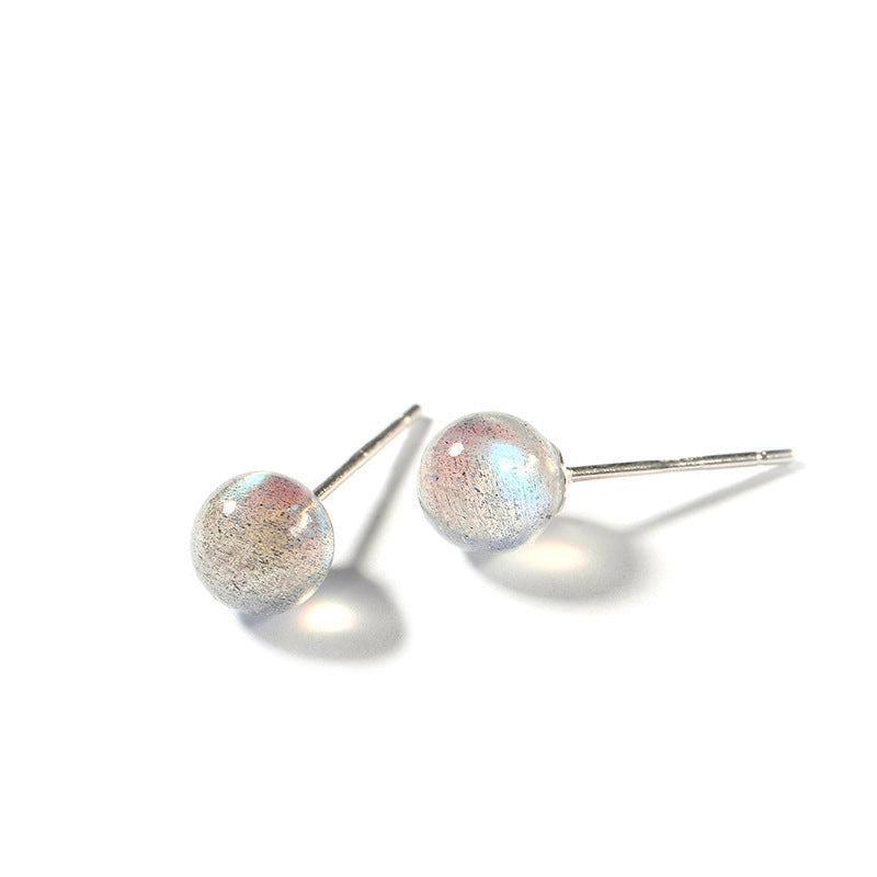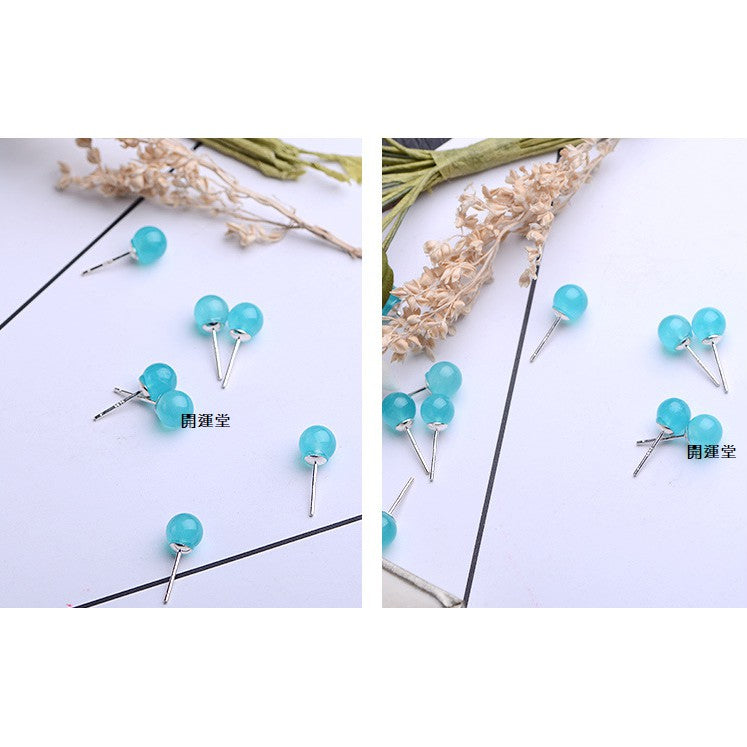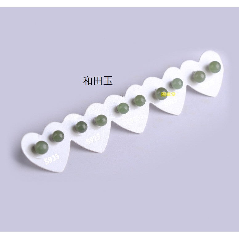 🔥現貨🔥耳針S925純銀耳針耳環5~6mm水晶耳釘女天然冰種天河石灰月光石珍珠紫雲母紫水晶和田玉磷灰石海藍寶耳釘【開運堂