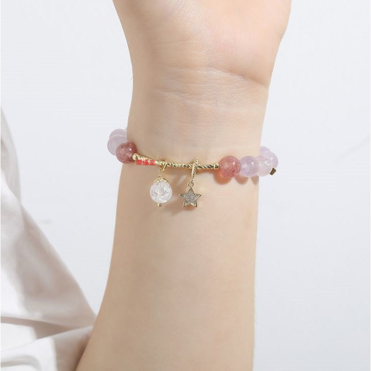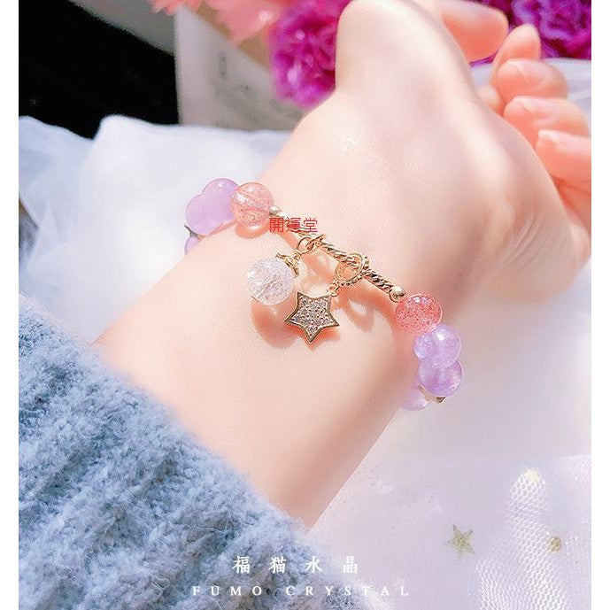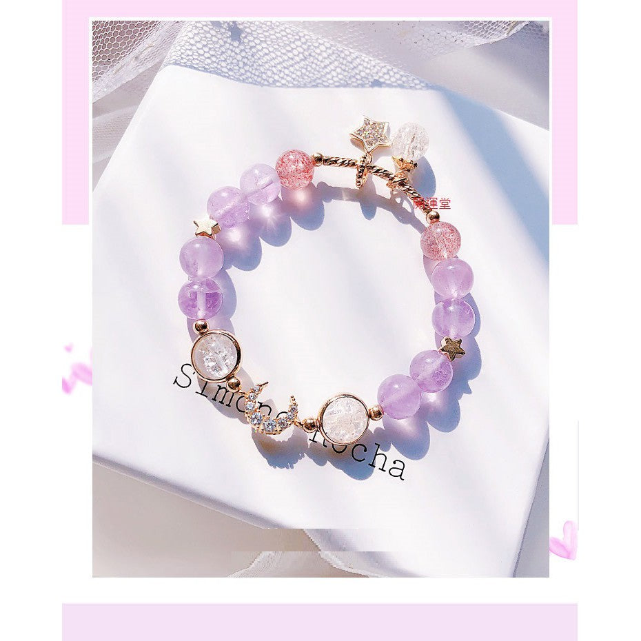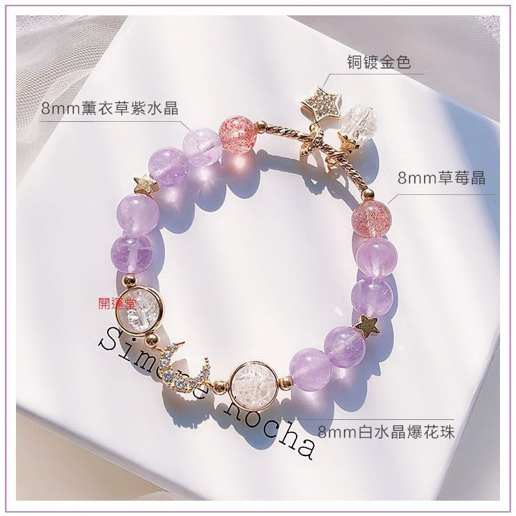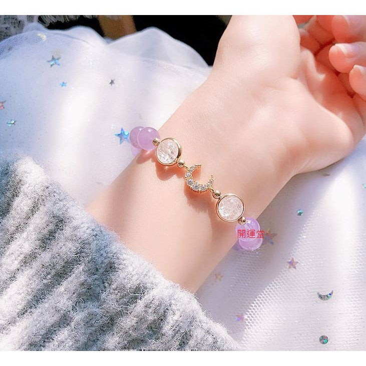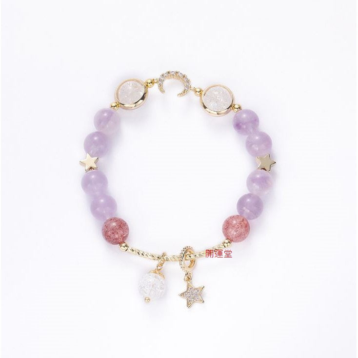 🔥現貨🔥【眾星捧月】8mm淡紫薰衣草紫水晶手鍊助學業星星月亮手飾招桃花銅鍍金水晶手鍊【開運堂】