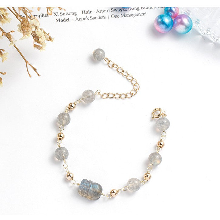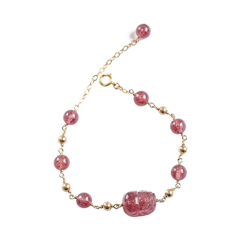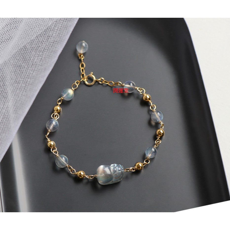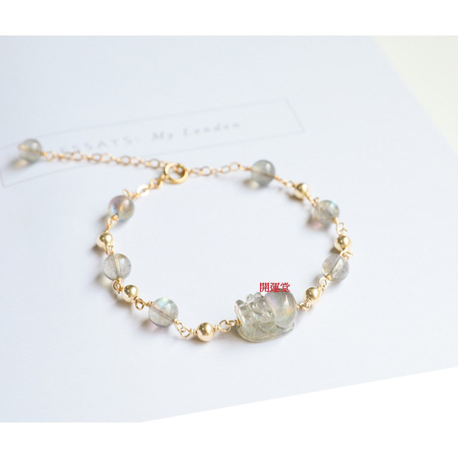 🔥現貨🔥【愛情+事業】小貔貅天然灰月光石草莓晶時尚手鍊女款本命年14K包金手串清新時尚好物推薦【開運堂】