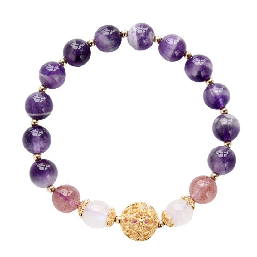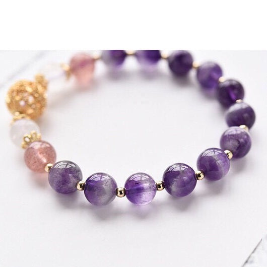 🔥台灣現貨【開運堂團購】女款天然夢幻紫水晶鍍金手鍊招桃花轉運水晶串珠手鍊飾品