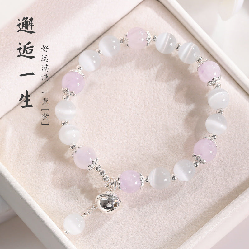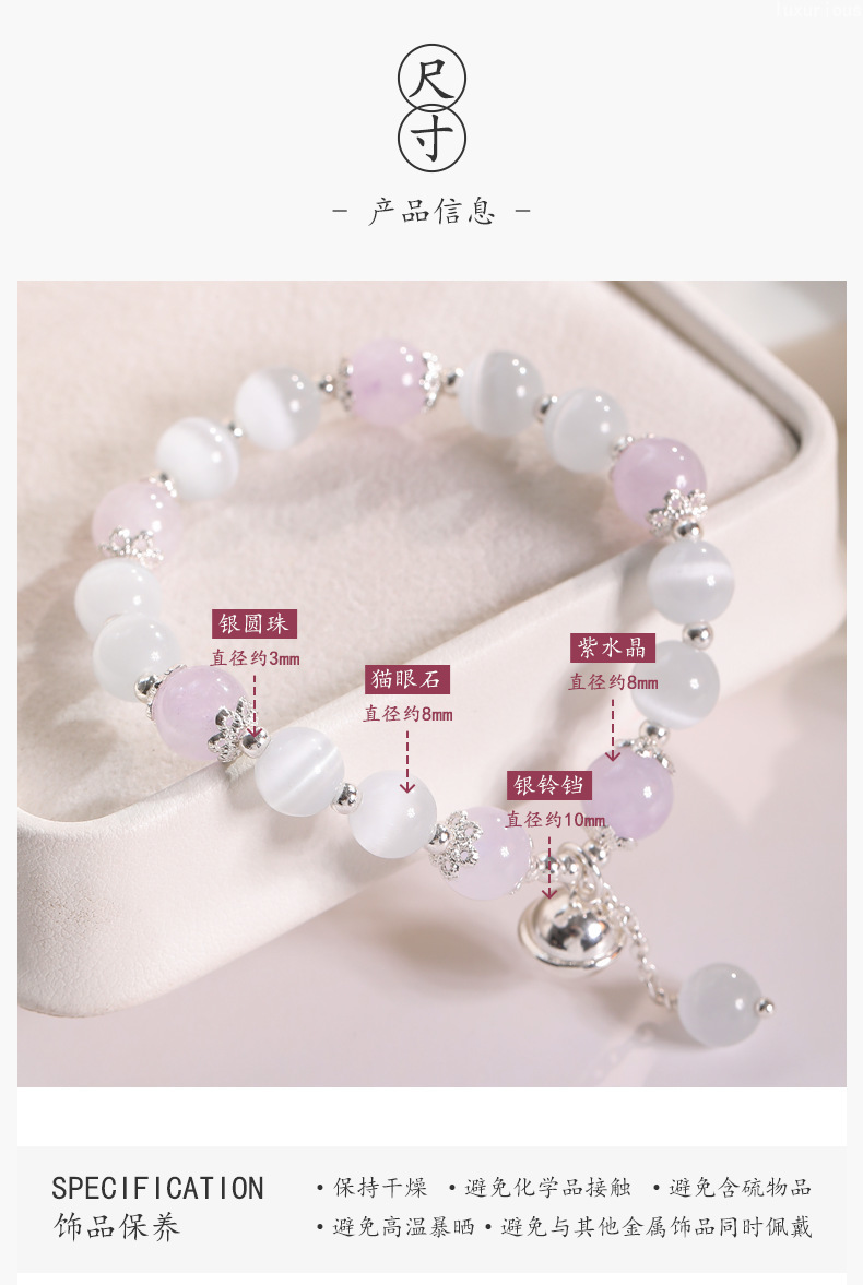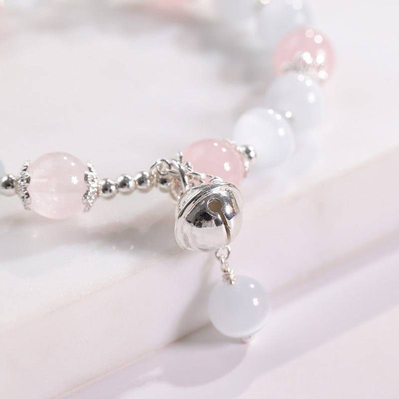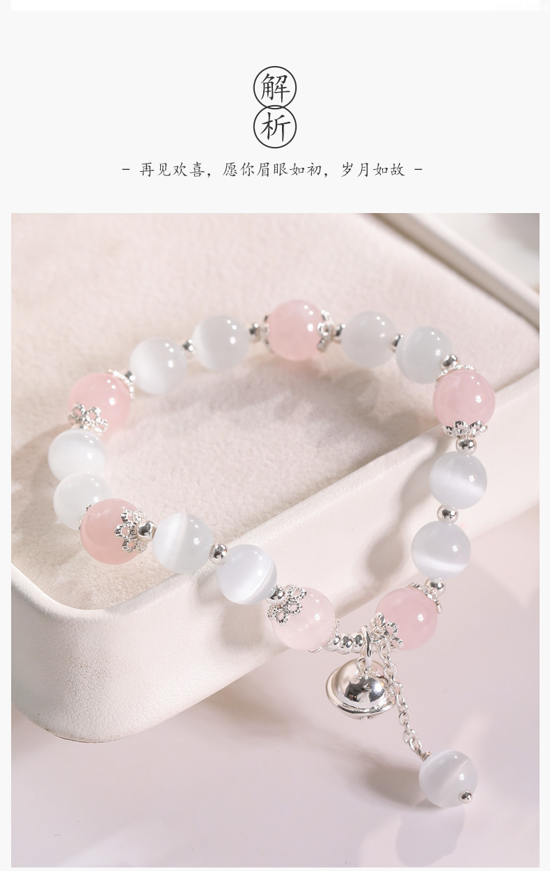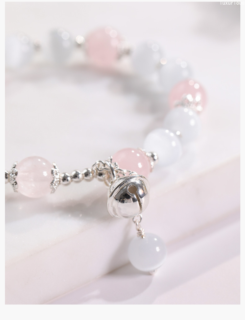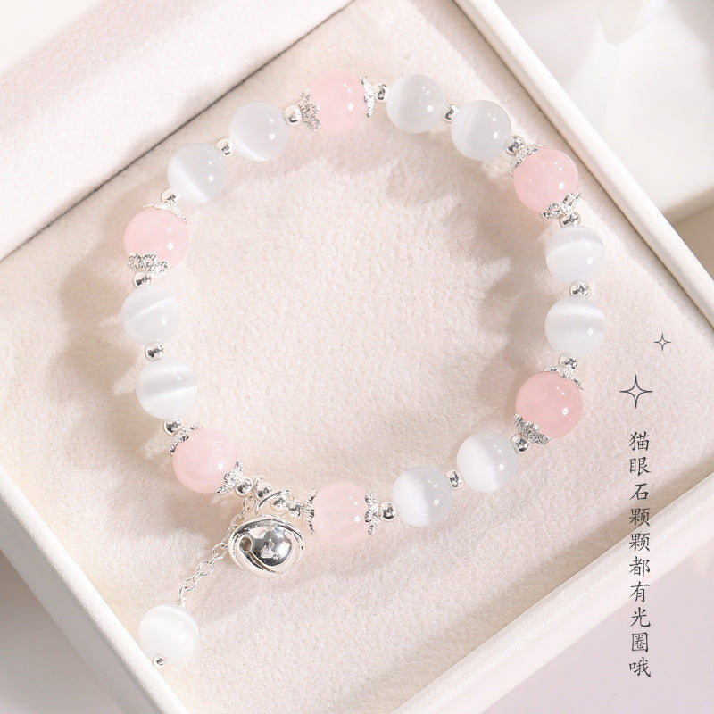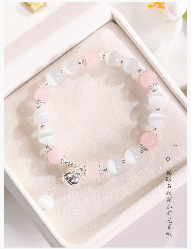 天然粉晶草莓晶水晶手链铃铛款猫眼石清新甜美风女友闺蜜生日送礼B23922-9"手串批發"