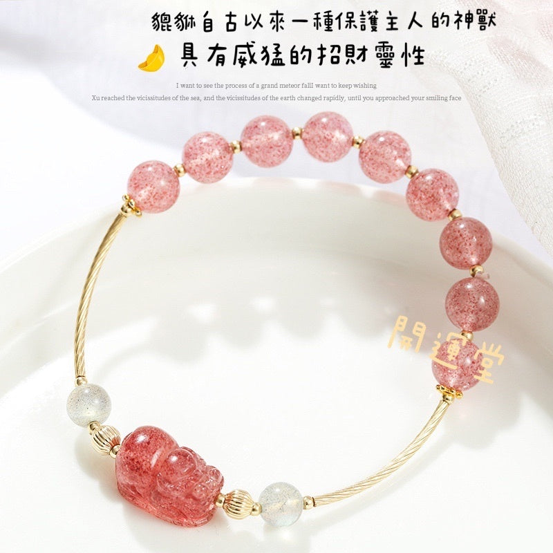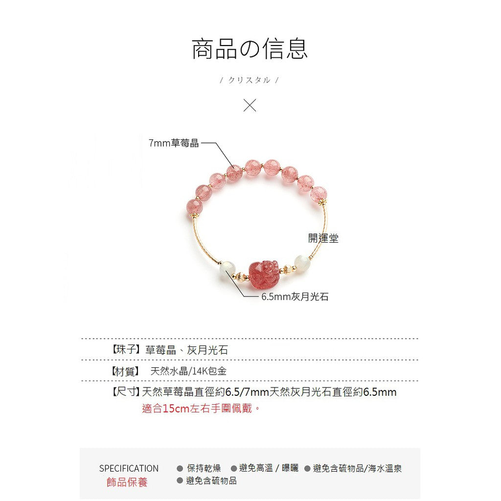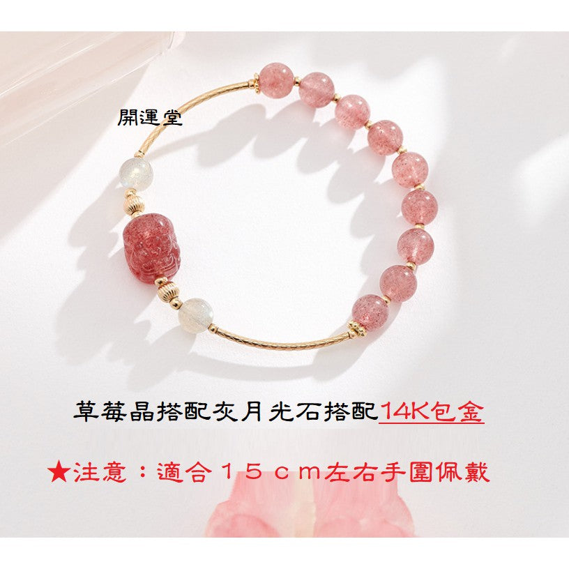 🔥現貨🔥【招正桃花增加魅力促姻緣】草莓晶貔貅灰月光石鍍14k手鍊女桃花運桃花水晶手串學生閨蜜信物【開運堂】