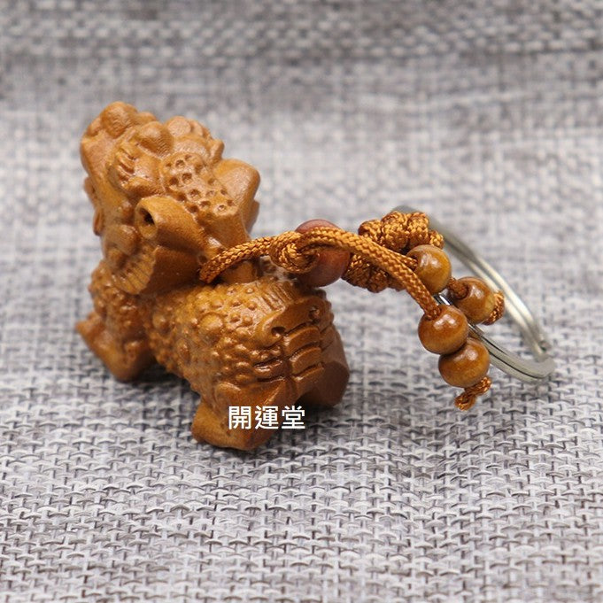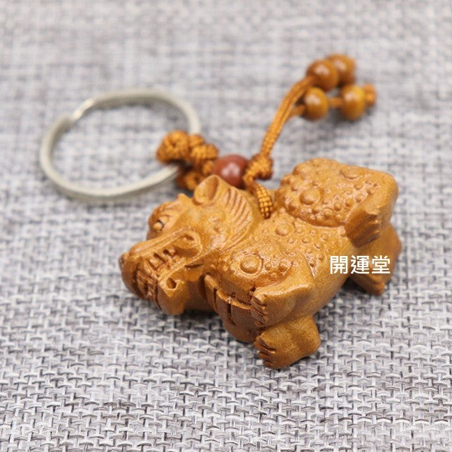 🔥現貨🔥桃木麒麟鑰匙扣麒麟鑰匙圈木質鎮宅神獸禮品挂件旅遊紀念品飾品吊墜汽車機車鑰匙圈【飾品批發】