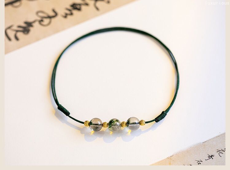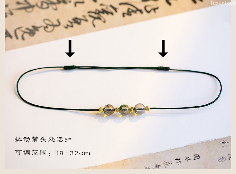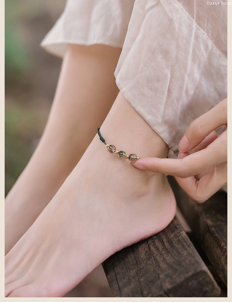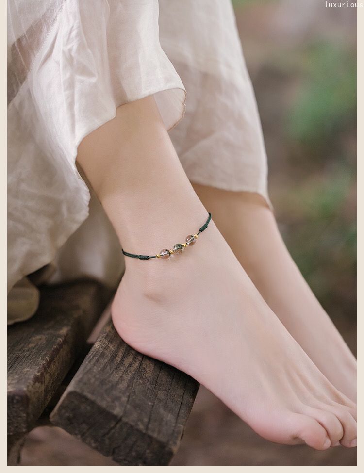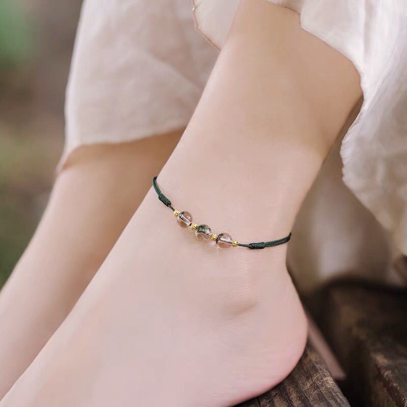(B2381449)綠幽靈水晶招財腳鍊女紅繩鏈轉運珠祈福簡約細手工編森系閨蜜禮物"飾品批發"