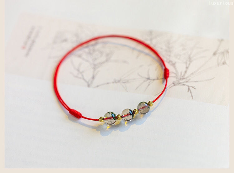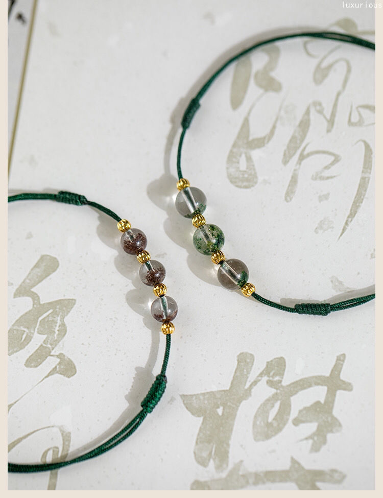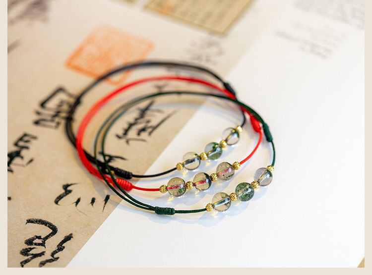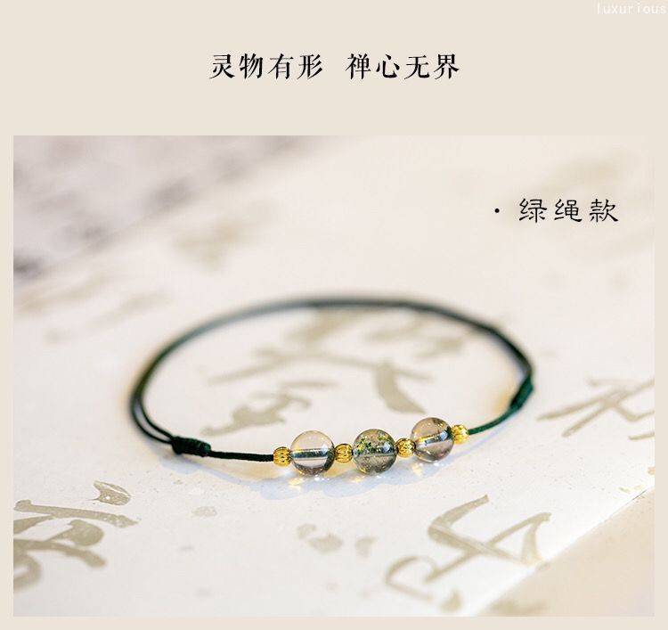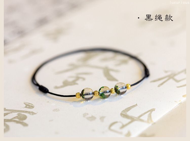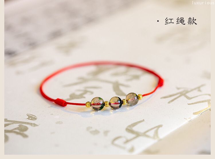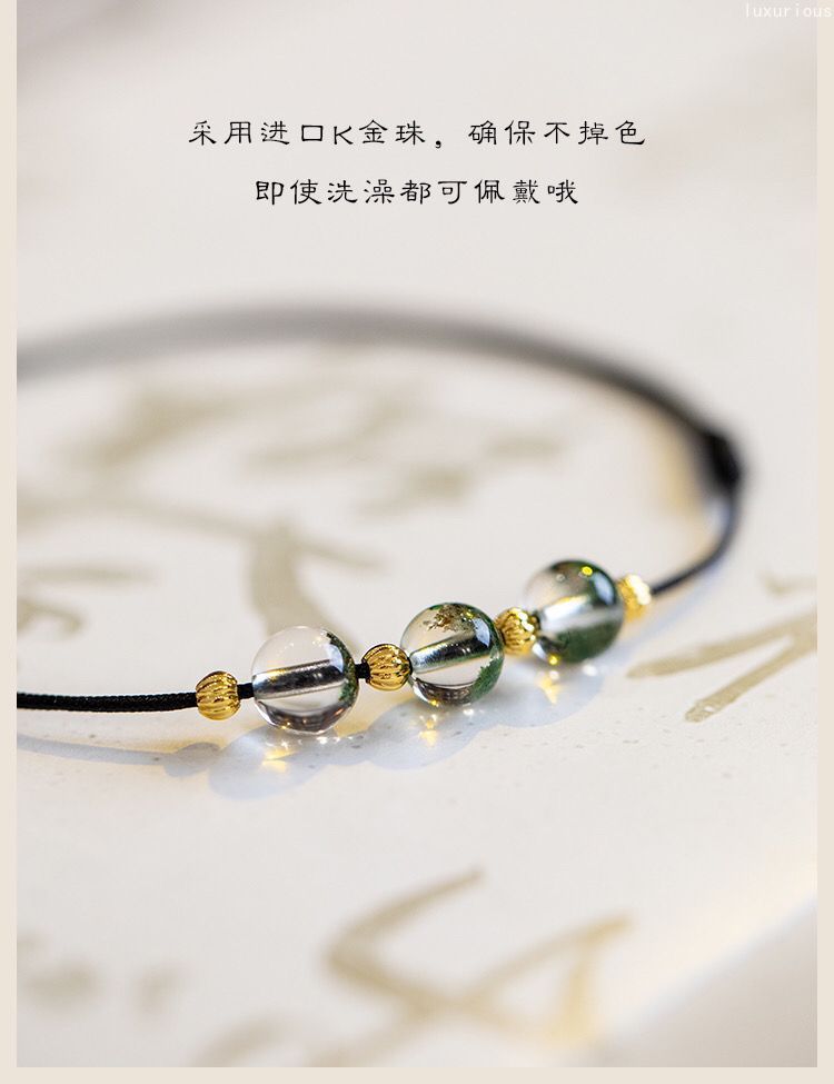(B2381449)綠幽靈水晶招財腳鍊女紅繩鏈轉運珠祈福簡約細手工編森系閨蜜禮物"飾品批發"