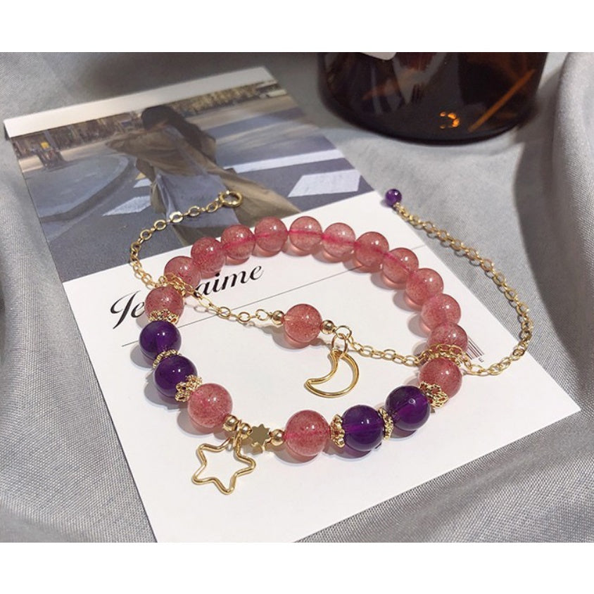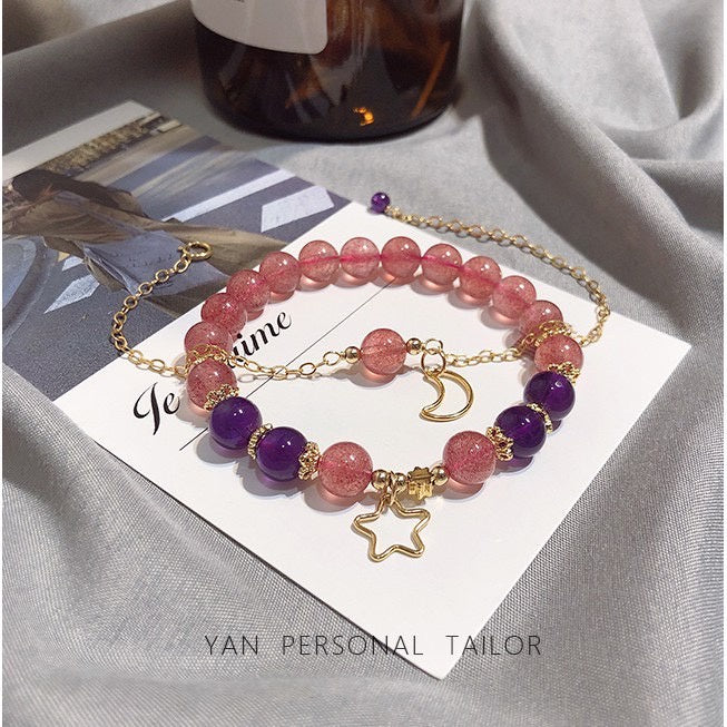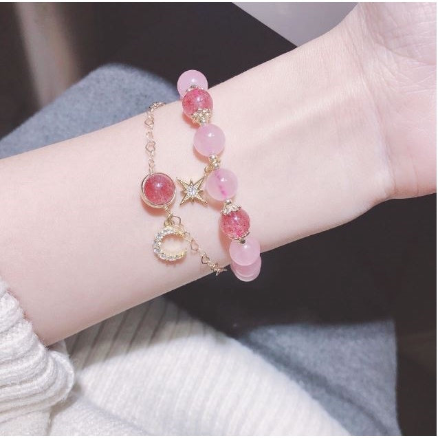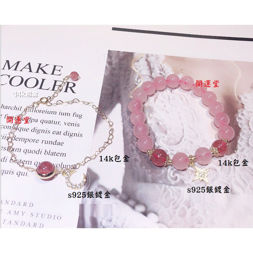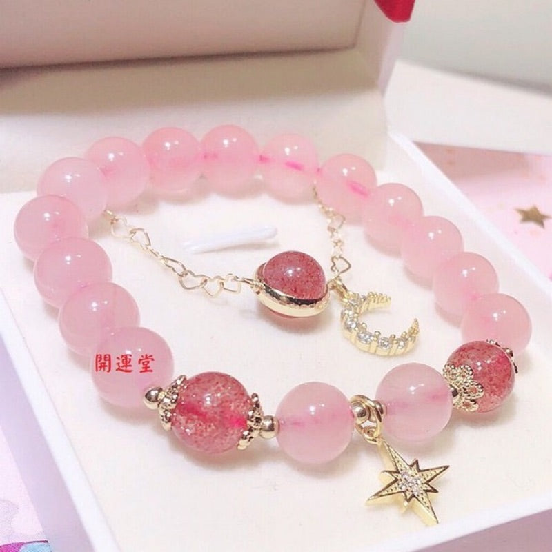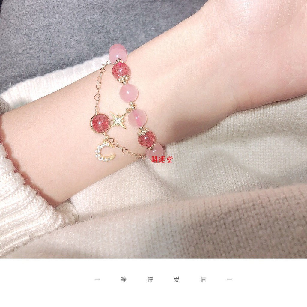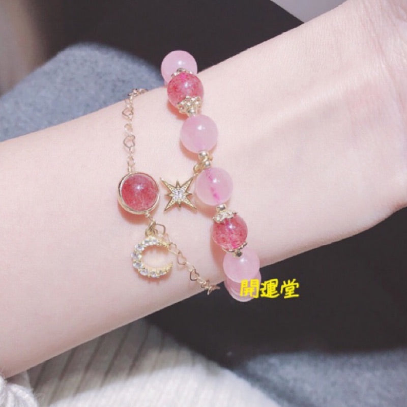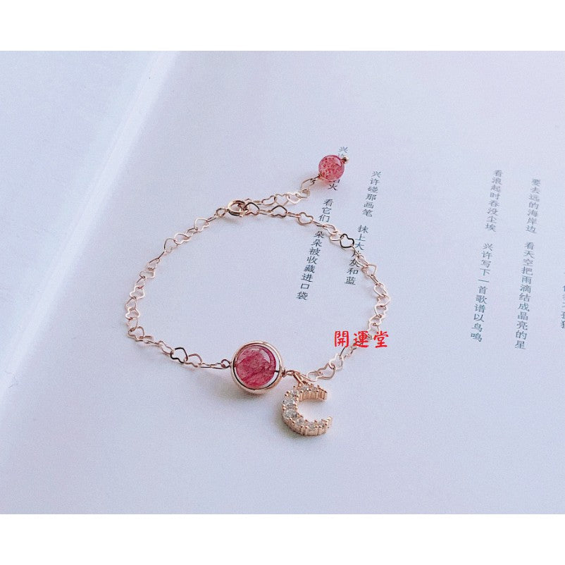 🔥現貨🔥粉水晶手鍊【轉運能量加倍招桃花】天然草莓晶粉晶轉運星月手鍊女招桃花七夕情人節禮物閨蜜生日禮物飾品批發