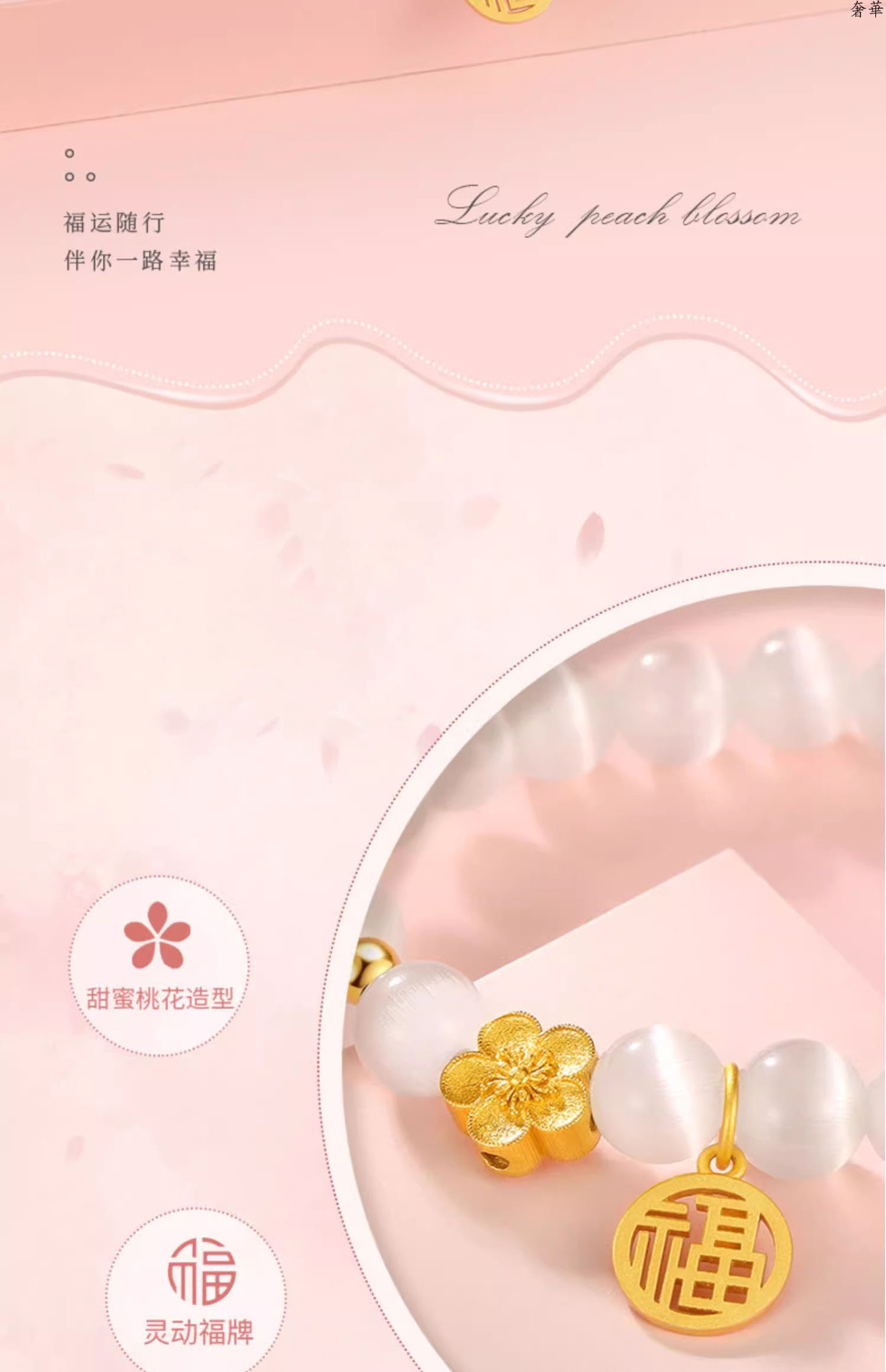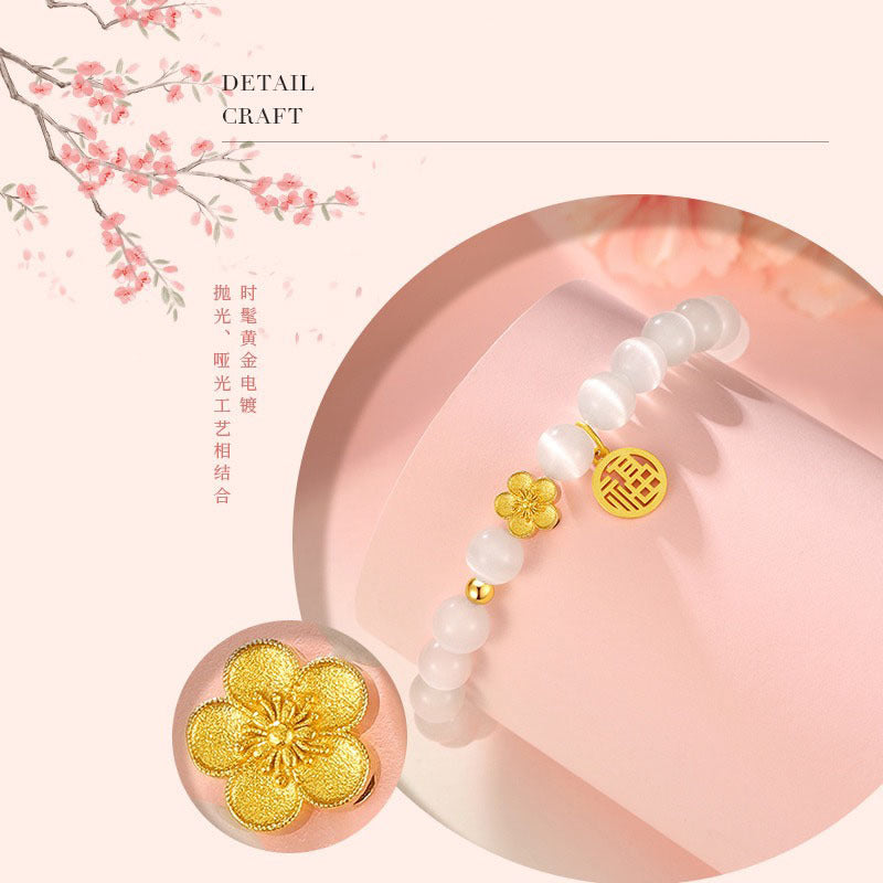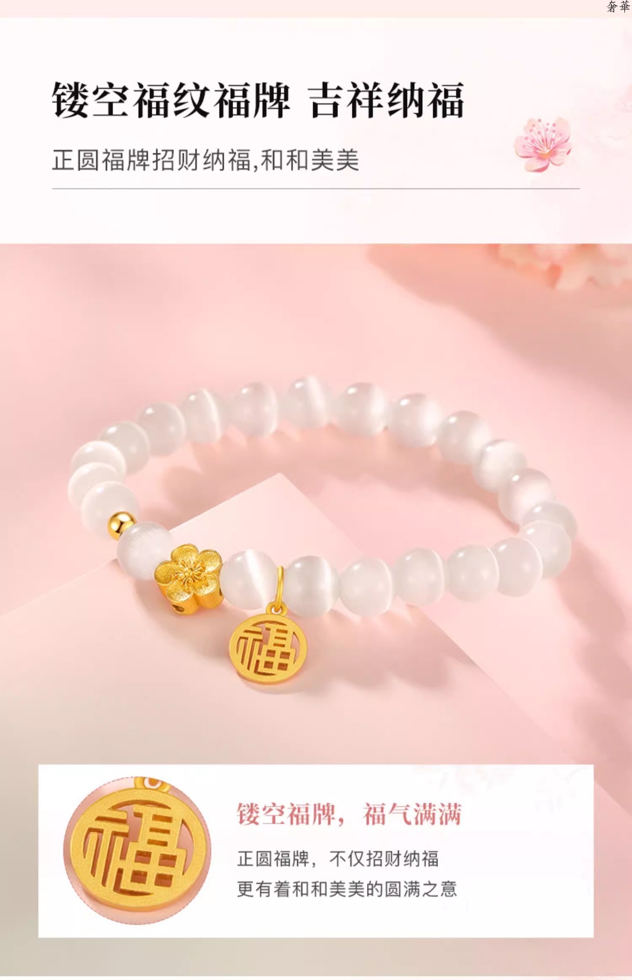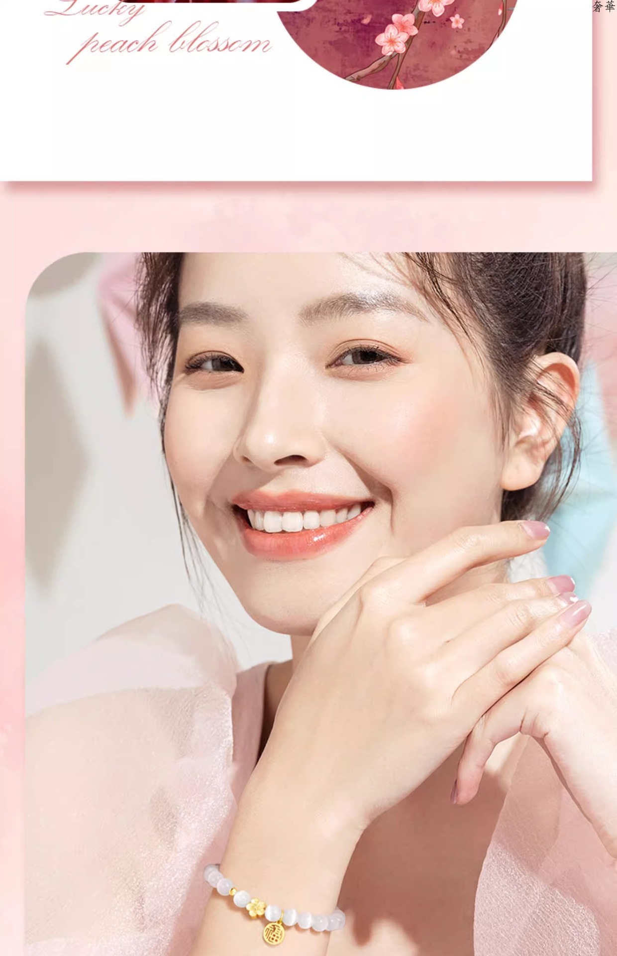 (B238803)貓眼石桃花串珠水晶手鍊福牌輕奢高級感手串新中式國風飾品送女友